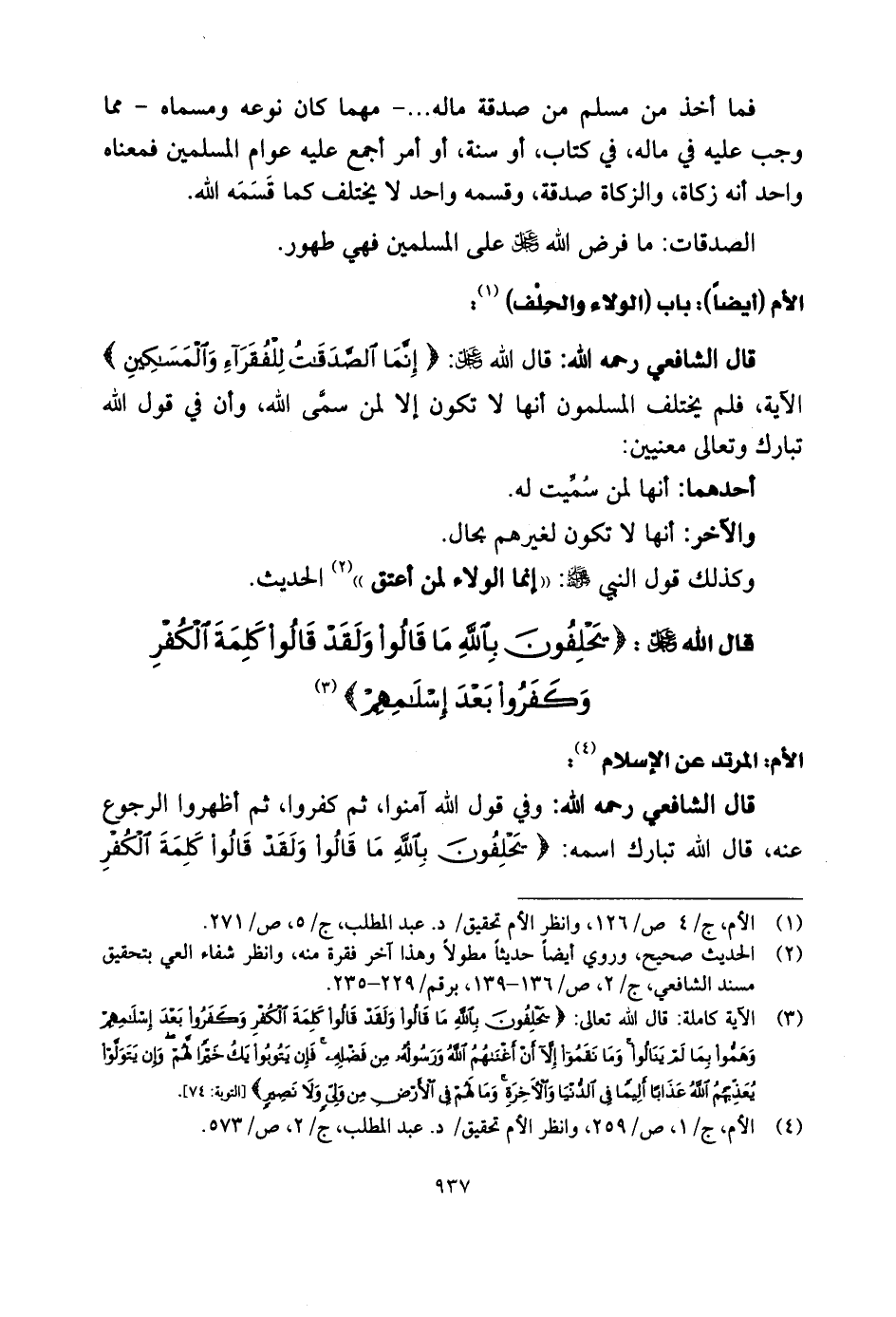 الأم (أيضاً) : باب (الولاء والحِلف)