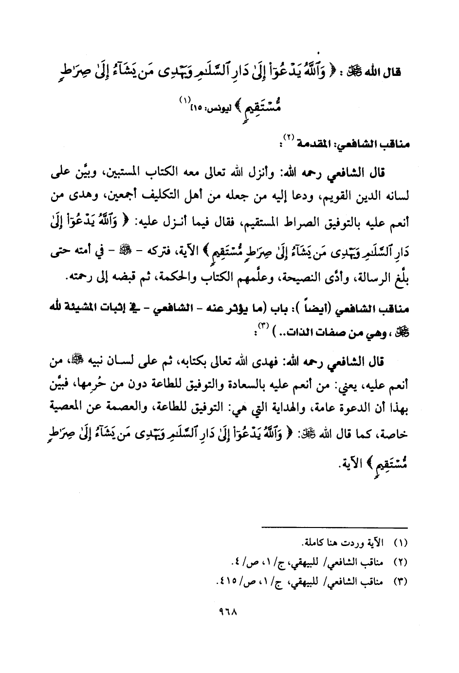 مناقب الشَّافِعِي (أيضاً) : باب (ما يؤثر عنه - الشَّافِعِي - في إثبات المشميئة لله - عز وجل - وهي من صفات الذات. .) :