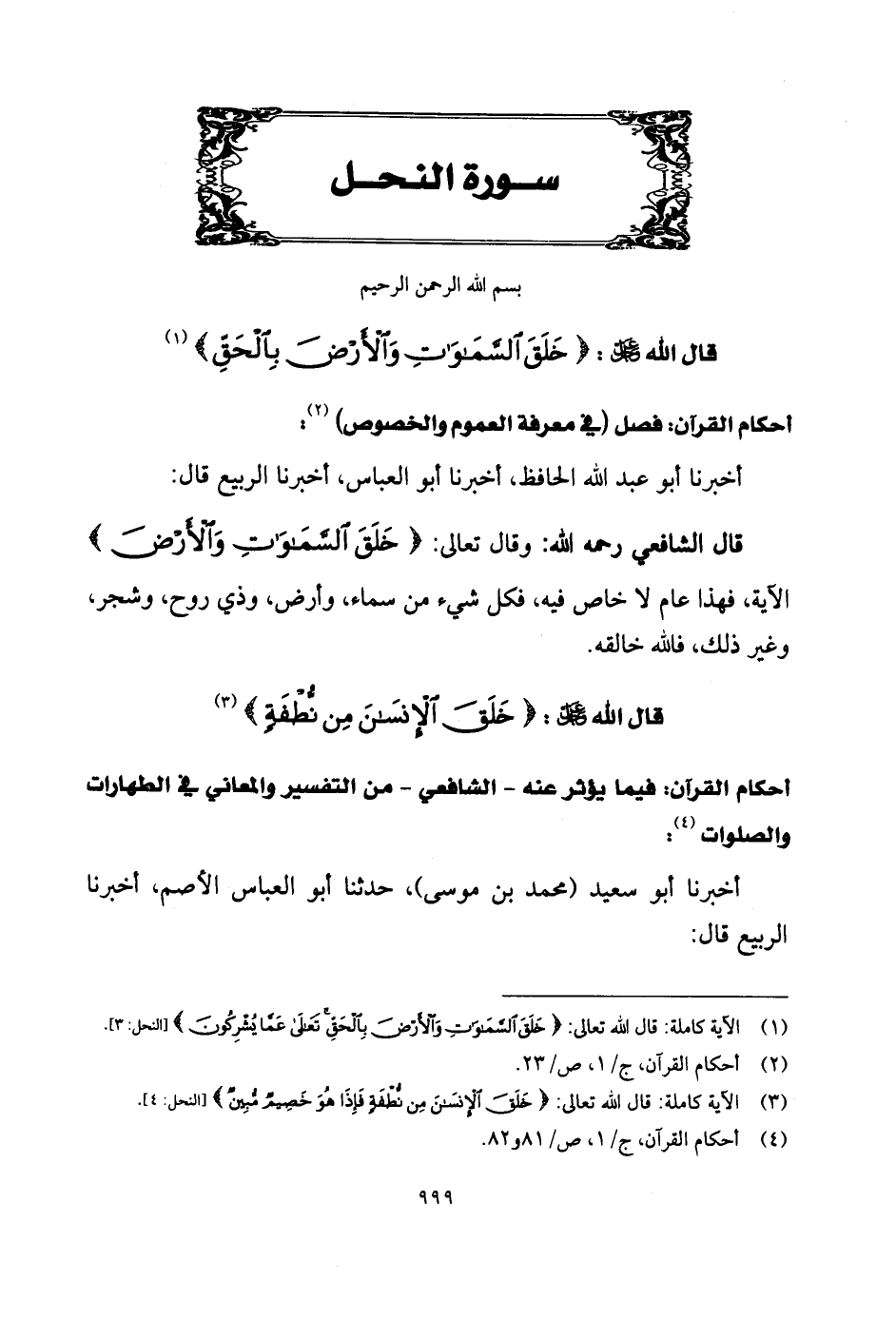 قال الشَّافِعِي رحمه الله: وقال تعالى: (خَلَقَ السَّمَاوَاتِ وَالْأَرْضَ)