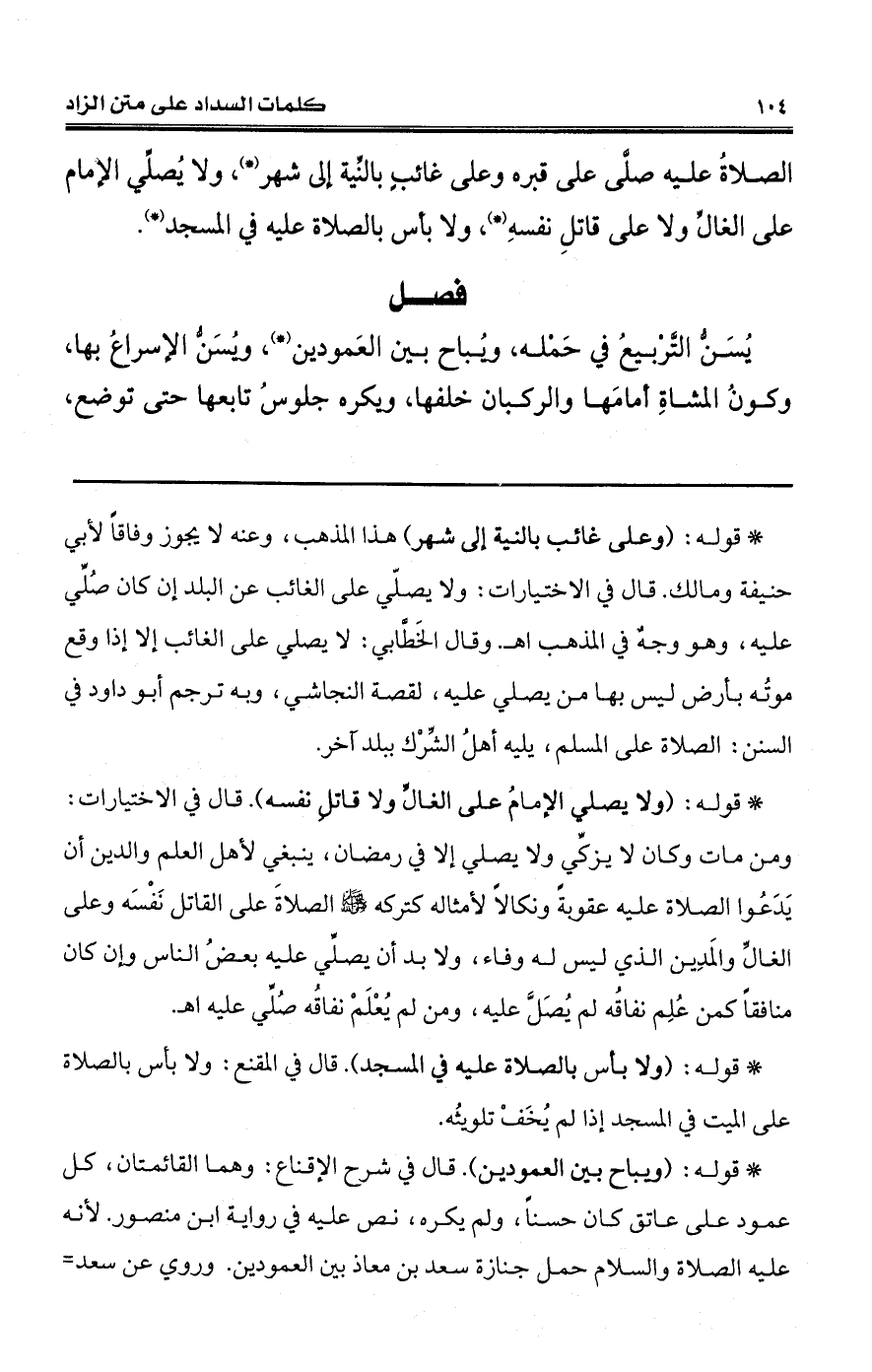 (*) قوله: (ولا يصلي الإمامُ على الغالِّ ولا قاتلِ نفسه). قال في الاختيارات: ومن مات وكان لا يزكِّي ولا يصلي إلا في رمضان، ينبغي لأهل العلم والدين أن يَدَعُوا الصلاة عليه عقوبةً ونكالاً لأمثاله كتركه - صلى الله عليه وسلم - الصلاةَ على القاتل نَفْسَه وعلى الغالِّ والمَدِين الذي ليس له وفاء، ولا بد أن يصلِّي عليه بعضُ الناس وإن كان منافقاً كمن عُلِم نفاقُه لم يُصَلَّ عليه، ومن لم يُعْلَمْ نفاقُه صُلِّي عليه اهـ.