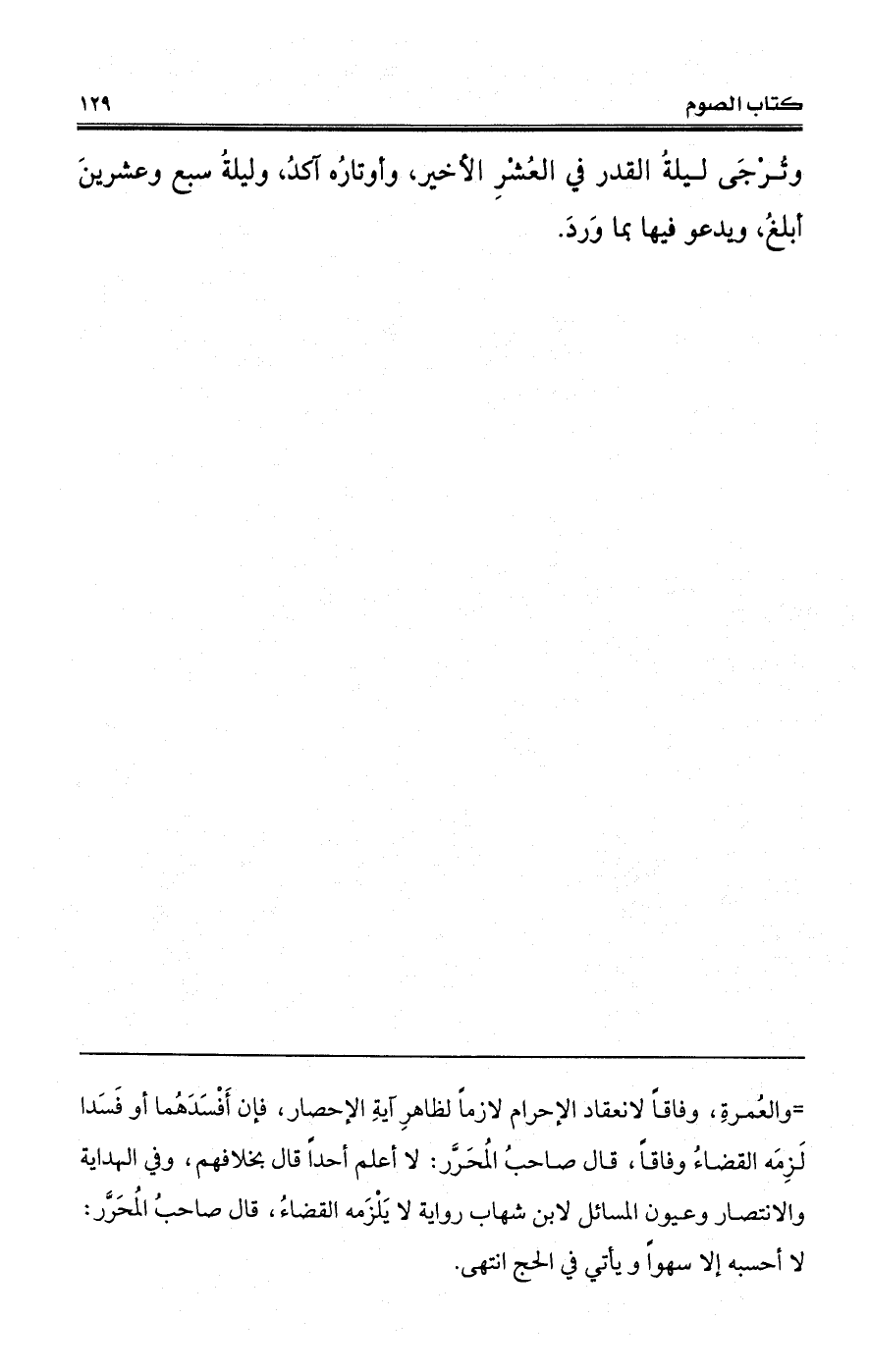 وتُرْجَى ليلةُ القدر في العُشْرِ الأخير، وأوتارُه آكدُ، وليلةُ سبع وعشرينَ أبلغُ، ويدعو فيها بما وَردَ.