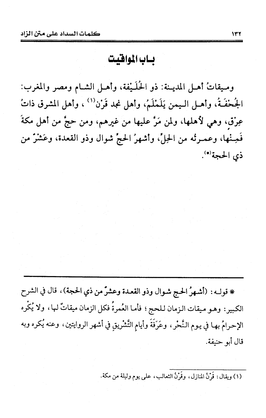 (*) قوله: (أشهرُ الحج شوال وذو القعدة وعشرٌ من ذي الحجة)، قال في الشرح الكبير: وهو ميقات الزمان للحج؛ فأما العُمرةُ فكل الزمان ميقاتٌ لها، ولا يُكْره الإحرامُ بها في يوم النَّحْر، وعَرَفَةَ وأيامِ التَّشْريقِ في أشهر الروايتين، وعنه يُكره وبه قال أبو حنيفة.