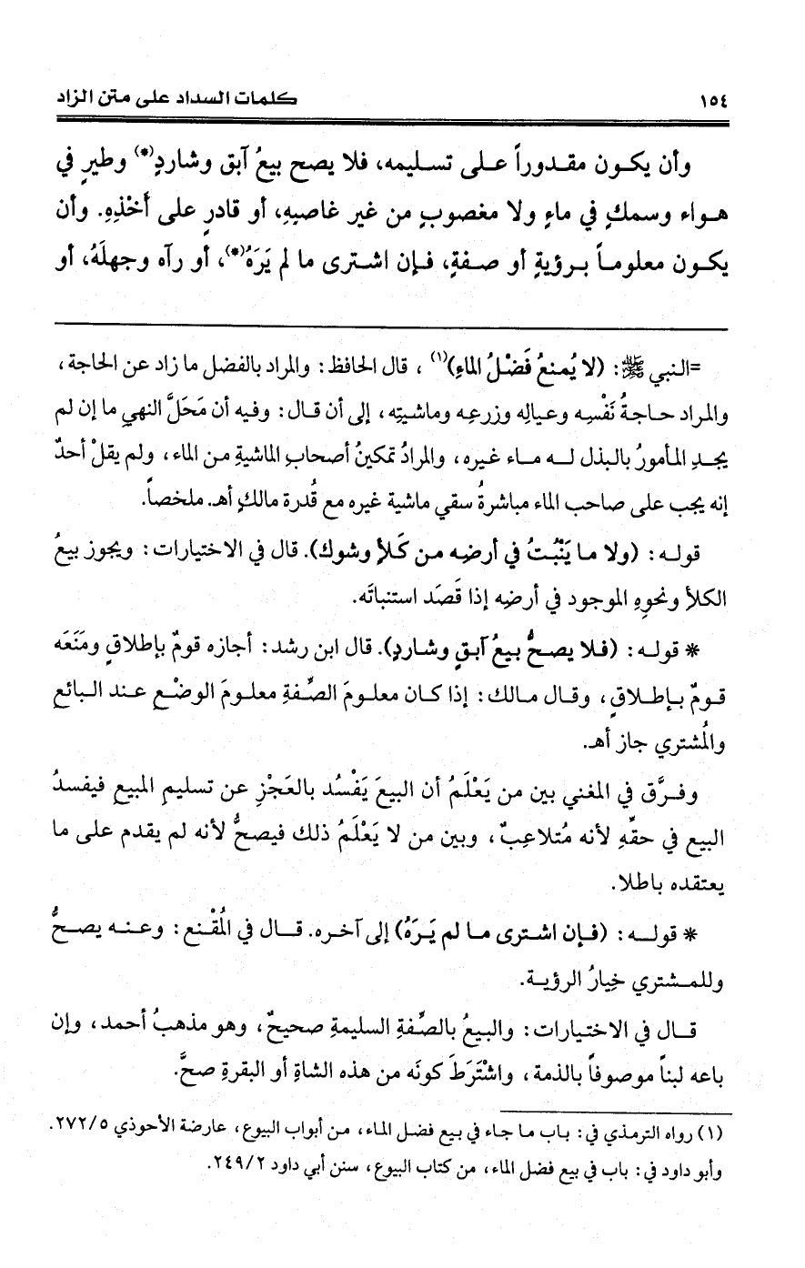 (¬1) رواه الترمذي في: باب ما جاء في بيع فضل الماء، من أبواب البيوع، عارضة الأحوذي 5/ 272. وأبو داود في: باب في بيع فضل الماء، من كتاب البيوع، سنن أبي داود 2/ 249.