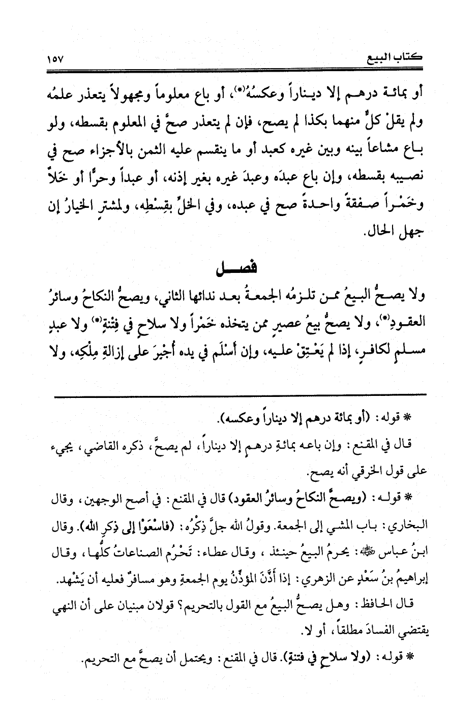 (*) قوله: (ويصحَّ النكاحُ وسائرُ العقود) قال في المقنع: في أصح الوجهين، وقال البخاري: باب المشي إلى الجمعة. وقولُ الله جلَّ ذِكْرُه: (فاسْعَوْا إلى ذِكْرِ الله). وقال ابنُ عباس - رضي الله عنه -: يحرمُ البيعُ حينئذ، وقال عطاء: تَحْرُم الصناعاتُ كلُّها، وقال إبراهيمُ بنُ سَعْدٍ عن الزهري: إذا أَذَّنَ المؤذِّنُ يوم الجمعةِ وهو مسافرٌ فعليه أن يَشْهد.
