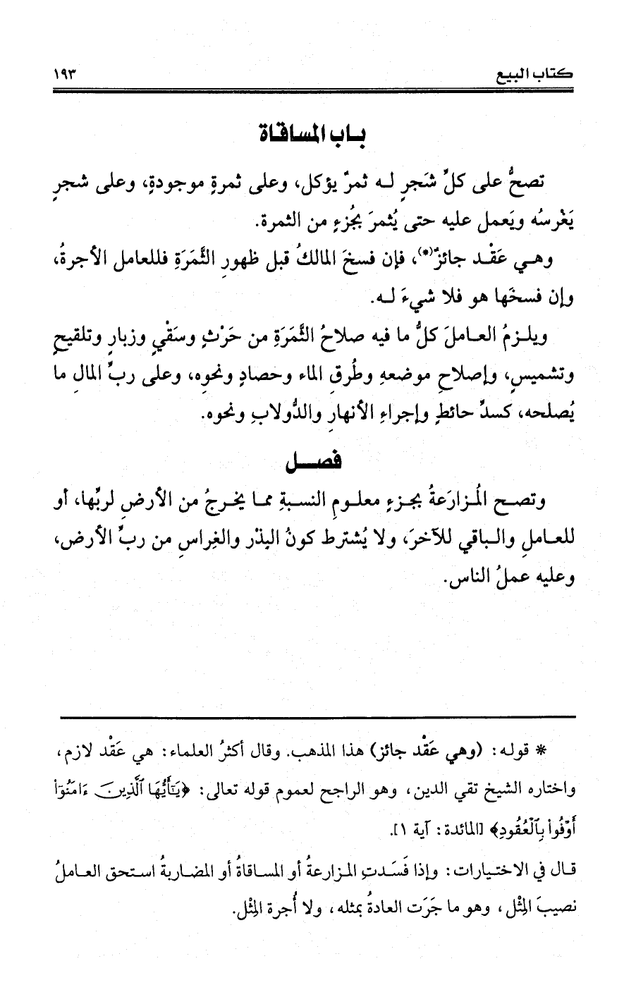 (*) قوله: (وهي عَقْد جائز) هذا المذهب. وقال أكثرُ العلماء: هي عَقْد لازم، واختاره الشيخ تقي الدين، وهو الراجح لعموم قوله تعالى: {يَا أَيُّهَا الَّذِينَ آَمَنُوا أَوْفُوا بِالْعُقُودِ} [المائدة: آية 1].