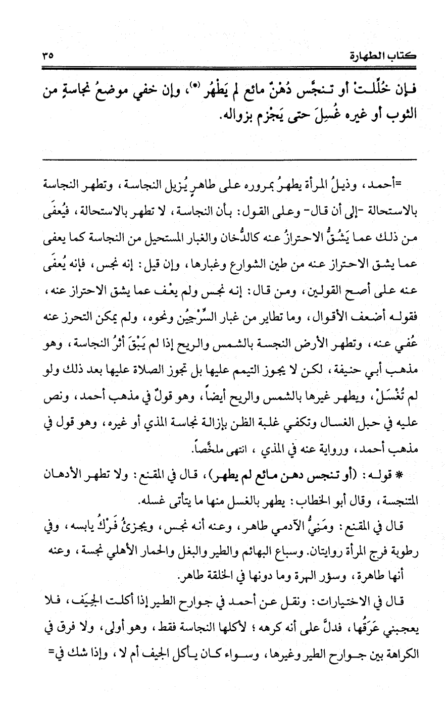 (*) قوله: (أو تنجس دهن مائع لم يطهر)، قال في المقنع: ولا تطهر الأدهان المتنجسة، وقال أبو الخطاب: يطهر بالغسل منها ما يتأتى غسله.