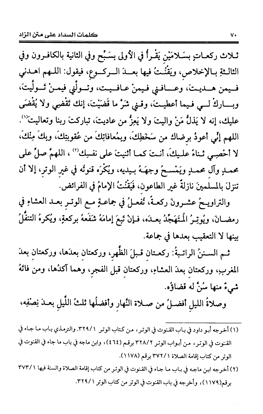 (¬2) أخرجه ابن ماجه في باب ما جاء في القنوت في الوتر من كتاب إقامة الصلاة والسنة فيها 1/ 373 برقم (1179)، في باب القنوت في الوتر من كتاب الوتر 1/ 329.