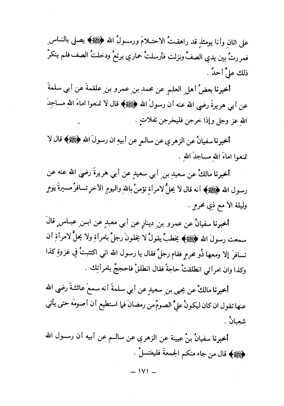 أَخْبَرَنَا سُفْيَانُ، عَنْ عَمْرٍو، يَعْنِي ابْنَ دِينَارٍ، عَنْ نَافِعِ بْنِ جُبَيْرٍ، عَنْ رَجُلٍ، مِنْ أَصْحَابِ النَّبِيِّ صَلَّى اللهُ عَلَيْهِ وَسَلَّمَ قَالَ: كَانَ رَسُولُ اللَّهِ صَلَّى اللهُ عَلَيْهِ وَسَلَّمَ فِي سَفَرٍ فَعَرَّسَ فَقَالَ: «§أَلَا رَجُلٌ صَالِحٌ يَكْلَؤُنَا اللَّيْلَةَ؛ لَا نَرْقُدُ عَنِ الصَّلَاةِ». فَقَالَ بِلَالٌ: أَنَا يَا رَسُولَ اللَّهِ، قَالَ: فَاسْتَنَدَ بِلَالٌ إِلَى رَاحِلَتِهِ وَاسْتَقْبَلَ الْفَجْرَ فَلَمْ يَفْزَعُوا إِلَّا بَحْرِ الشَّمْسِ فِي وُجُوهِهِمْ، فَقَالَ رَسُولُ اللَّهِ صَلَّى اللهُ عَلَيْهِ وَسَلَّمَ: «يَا بِلَالُ، أَيْنَ مَا قُلْتَ؟» فَقَالَ بِلَالٌ: يَا رَسُولَ اللَّهِ، أَخَذَ بِنَفْسِيَ الَّذِي أَخَذَ بِنَفْسِكَ، قَالَ: فَتَوَضَّأَ رَسُولُ اللَّهِ صَلَّى اللهُ عَلَيْهِ وَسَلَّمَ ثُمَّ صَلَّى رَكْعَتَيِ الْفَجْرِ، ثُمَّ اقْتَادُوا شَيْئًا، ثُمَّ صَلَّى الْفَجْرَ