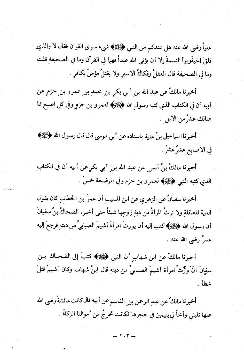 أَخْبَرَنَا مَالِكُ بْنُ أَنَسٍ، عَنِ ابْنِ شِهَابٍ، عَنْ حَرَامِ بْنِ سَعْدِ بْنِ مُحَيِّصَةَ، أَنَّ نَاقَةً لِلْبَرَاءِ بْنِ عَازِبٍ رَضِيَ اللَّهُ عَنْهُ دَخَلَتْ حَائِطًا لِقَوْمٍ فَأَفْسَدَتْ فِيهِ، فَقَضَى رَسُولُ اللَّهِ صَلَّى اللهُ عَلَيْهِ وَسَلَّمَ عَلَى أَهْلِ الْأَمْوَالِ حَفِظَهَا بِالنَّهَارِ، §وَمَا أَفْسَدَتِ الْمَوَاشِي بِاللَّيْلِ فَهُوَ ضَامِنٌ عَلَى أَهْلِهَا