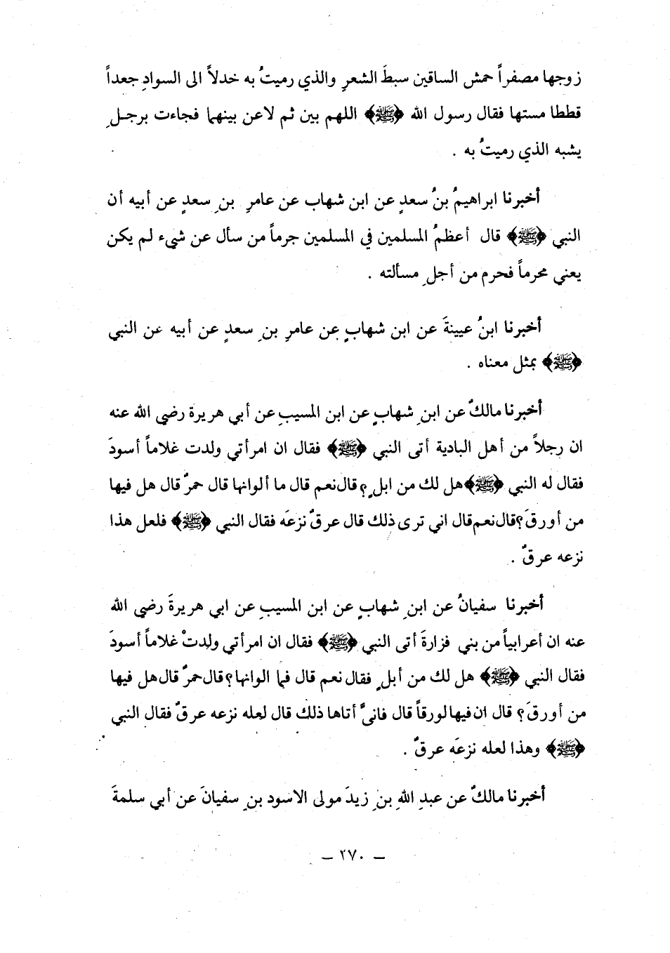 أَخْبَرَنَا مَالِكٌ قَالَ: حَدَّثَنِي ابْنُ شِهَابٍ، أَنَّ سَهْلَ بْنَ سَعْدٍ السَّاعِدِيَّ، أَخْبَرَهُ أَنَّ عُوَيْمِرًا الْعَجْلَانِيَّ جَاءَ إِلَى عَاصِمِ بْنِ عَدِيٍّ الْأَنْصَارِيِّ فَقَالَ لَهُ: أَرَأَيْتَ يَا عَاصِمُ لَوْ أَنَّ رَجُلًا وَجَدَ مَعَ امْرَأَتِهِ رَجُلًا، أَيَقْتُلُهُ فَتَقْتُلُونَهُ، أَمْ كَيْفَ يَفْعَلُ؟ سَلْ لِي يَا عَاصِمُ رَسُولَ اللَّهِ صَلَّى اللهُ عَلَيْهِ وَسَلَّمَ عَنْ ذَلِكَ، فَسَأَلَ عَاصِمٌ رَسُولَ اللَّهِ صَلَّى اللهُ عَلَيْهِ وَسَلَّمَ عَنْ ذَلِكَ، فَكَرِهَ رَسُولُ اللَّهِ صَلَّى اللهُ عَلَيْهِ وَسَلَّمَ الْمَسَائِلَ وَعَابَهَا حَتَّى كَبُرَ عَلَى عَاصِمٍ مَا سَمِعَ مِنْ رَسُولِ اللَّهِ صَلَّى اللهُ عَلَيْهِ وَسَلَّمَ، فَلَمَّا رَجَعَ عَاصِمٌ إِلَى أَهْلِهِ جَاءَهُ عُوَيْمِرٌ فَقَالَ: يَا عَاصِمُ، مَاذَا قَالَ لَكَ رَسُولُ اللَّهِ صَلَّى اللهُ عَلَيْهِ وَسَلَّمَ؟ فَقَالَ عَاصِمٌ لِعُوَيْمِرٍ: لَمْ تَأْتِنِي بِخَيْرٍ، قَدْ كَرِهَ رَسُولُ اللَّهِ صَلَّى اللهُ عَلَيْهِ وَسَلَّمَ الْمَسْأَلَةَ الَّتِي سَأَلْتُهُ عَنْهَا، فَقَالَ عُوَيْمِرٌ: وَاللَّهِ لَا أَنْتَهِي حَتَّى أَسْأَلَهُ عَنْهَا، فَأَقْبَلَ عُوَيْمِرٌ حَتَّى أَتَى رَسُولَ اللَّهِ صَلَّى اللهُ عَلَيْهِ وَسَلَّمَ وَسَطَ النَّاسِ فَقَالَ: يَا رَسُولَ اللَّهِ، أَرَأَيْتَ رَجُلًا وَجَدَ مَعَ امْرَأَتِهِ رَجُلًا، أَيَقْتُلُهُ فَتَقْتُلُونَهُ، أَمْ كَيْفَ يَفْعَلُ؟ فَقَالَ النَّبِيُّ صَلَّى اللهُ عَلَيْهِ وَسَلَّمَ: «§قَدْ أَنْزَلَ اللَّهُ فِيكَ وَفِي صَاحِبَتِكَ، فَاذْهَبْ فَأْتِ بِهَا». فَقَالَ سَهْلُ بْنُ سَعْدٍ: فَتَلَاعَنَا، وَأَنَا مَعَ النَّاسِ عِنْدَ رَسُولِ اللَّهِ صَلَّى اللهُ عَلَيْهِ وَسَلَّمَ، فَلَمَّا فَرَغَا مِنْ تَلَاعُنِهِمَا قَالَ عُوَيْمِرٌ: كَذَبْتُ يَا رَسُولَ اللَّهِ إِنْ أَمْسَكْتُهَا، فَطَلَّقَهَا ثَلَاثًا قَبْلَ أَنْ يَأْمُرَهُ رَسُولُ اللَّهِ صَلَّى اللهُ عَلَيْهِ وَسَلَّمَ قَالَ ابْنُ شِهَابٍ: فَكَانَتْ تِلْكَ سُنَّةُ الْمُتَلَاعِنَيْنِ