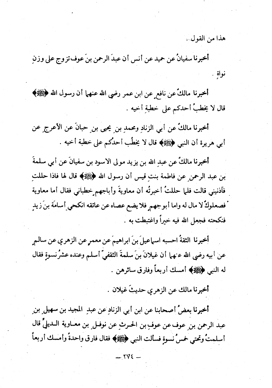 أَخْبَرَنَا مَالِكٌ، عَنْ عَبْدِ اللَّهِ بْنِ أَبِي بَكْرِ بْنِ مُحَمَّدِ بْنِ عَمْرِو بْنِ حَزْمٍ، عَنْ عَبْدِ الْمَلِكِ بْنِ أَبِي بَكْرِ بْنِ عَبْدِ الرَّحْمَنِ، أَنَّ رَسُولَ اللَّهِ صَلَّى اللهُ عَلَيْهِ وَسَلَّمَ حِينَ تَزَوَّجَ أُمَّ سَلَمَةَ وَأَصْبَحَتْ عِنْدَهُ قَالَ: «لَيْسَ بِكِ عَلَى أَهْلِكِ هَوَانٌ، §إِنْ شِئْتِ سَبَّعْتُ عِنْدَكِ وَسَبَّعْتُ عِنْدَهُنَّ، وَإِنْ شِئْتِ ثَلَّثْتُ عِنْدَكِ وَدُرْتُ». قَالَتْ: ثَلِّثْ