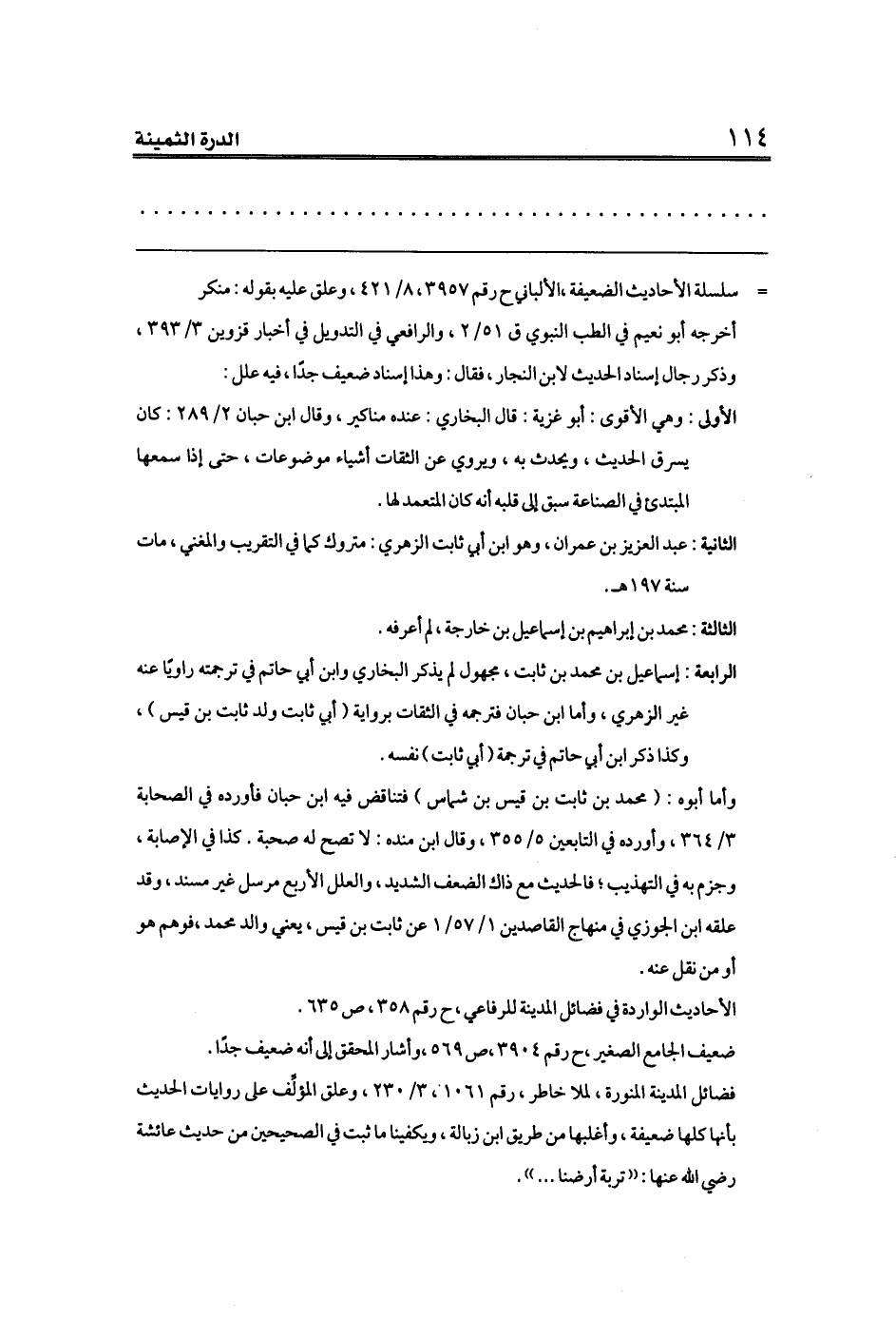 الأحاديث الواردة في فضائل المدينة للرفاعي، ح رقم ٣٥٨، ص ٦٣٥.