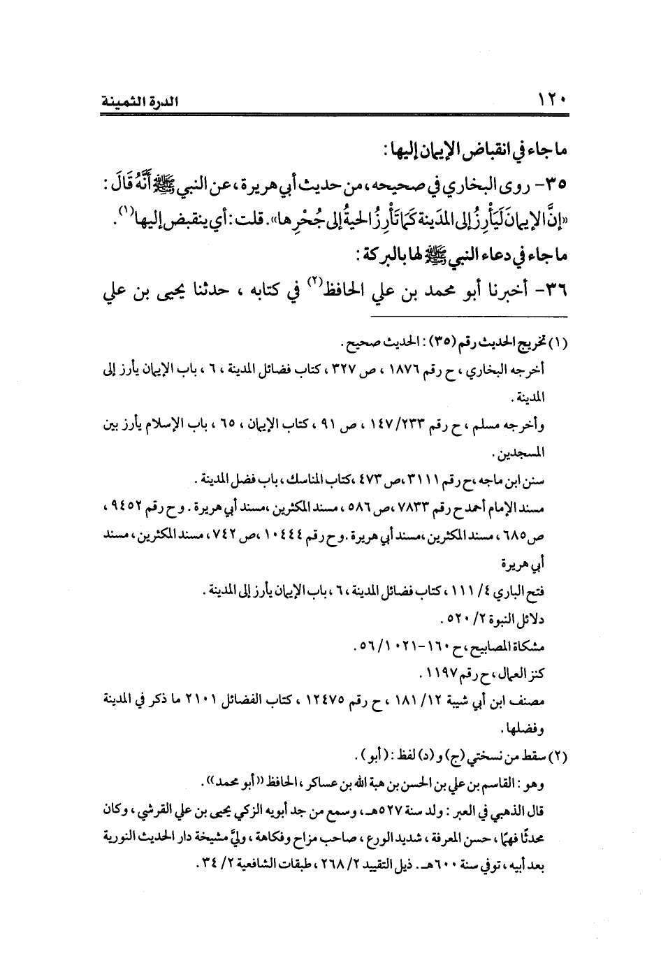 سنن ابن ماجه، ح رقم ٣١١١،ص ٤٧٣،كتاب المناسك، باب فضل المدينة.