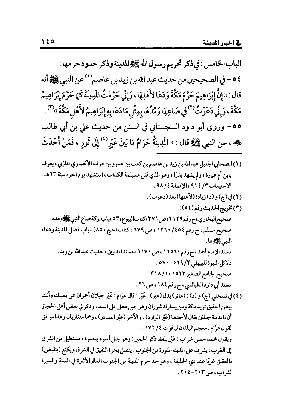 الباب الخامس: في ذكر تحريم رسول الله صلى الله عليه وسلم المدينة وذكر حدود حرمها: