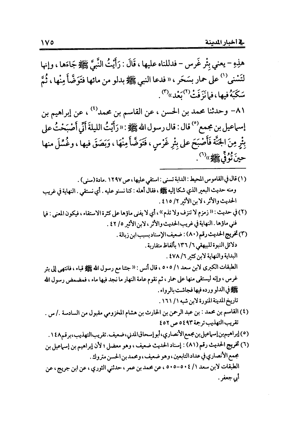 تاريخ المدينة المنورة لابن شبه ١/ ١٦١.