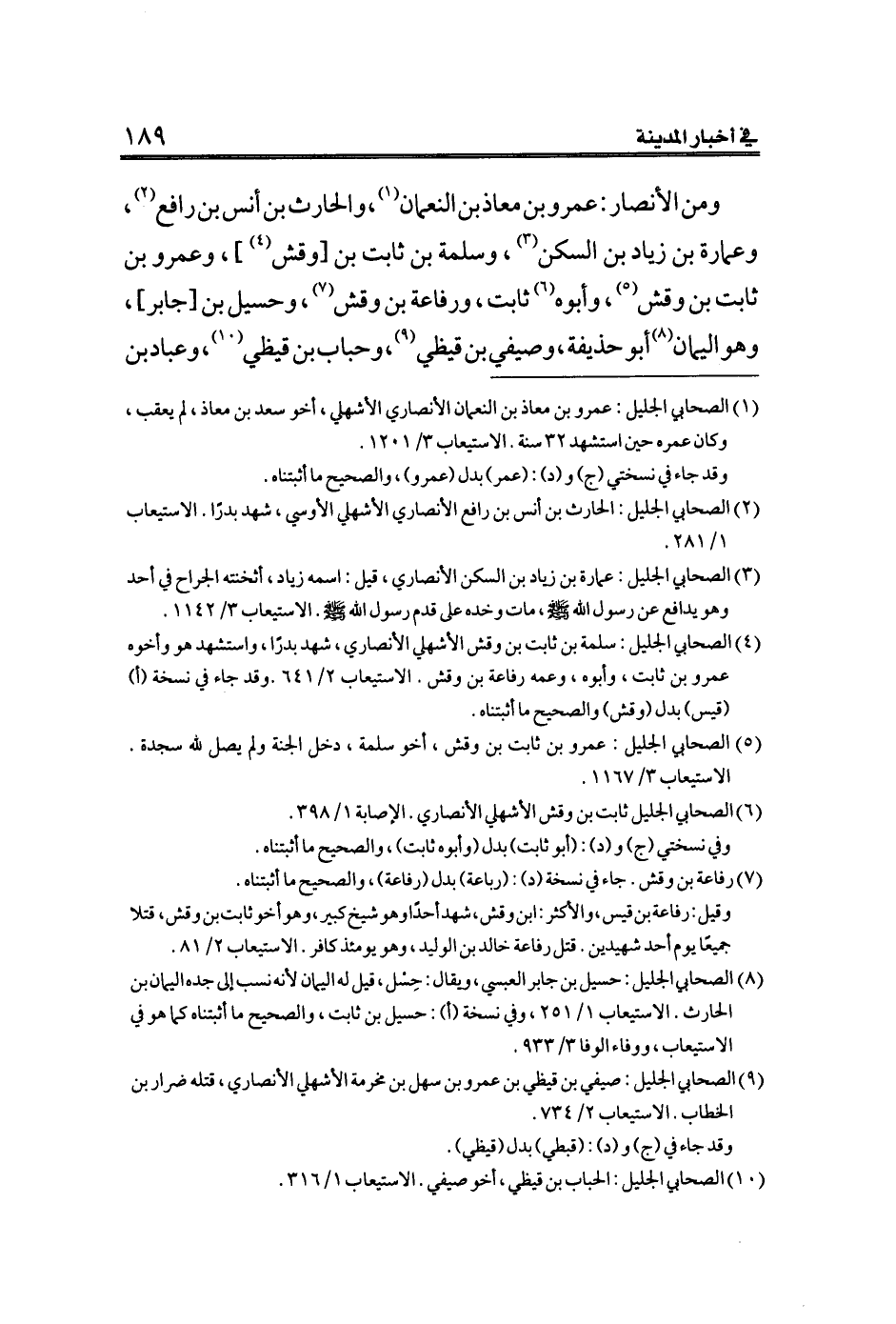 (¬٢) الصحابي الجليل: الحارث بن أنس بن رافع الأنصاري الأشهلي الأوسي، شهد بدرًا. الاستيعاب ١/ ٢٨١.