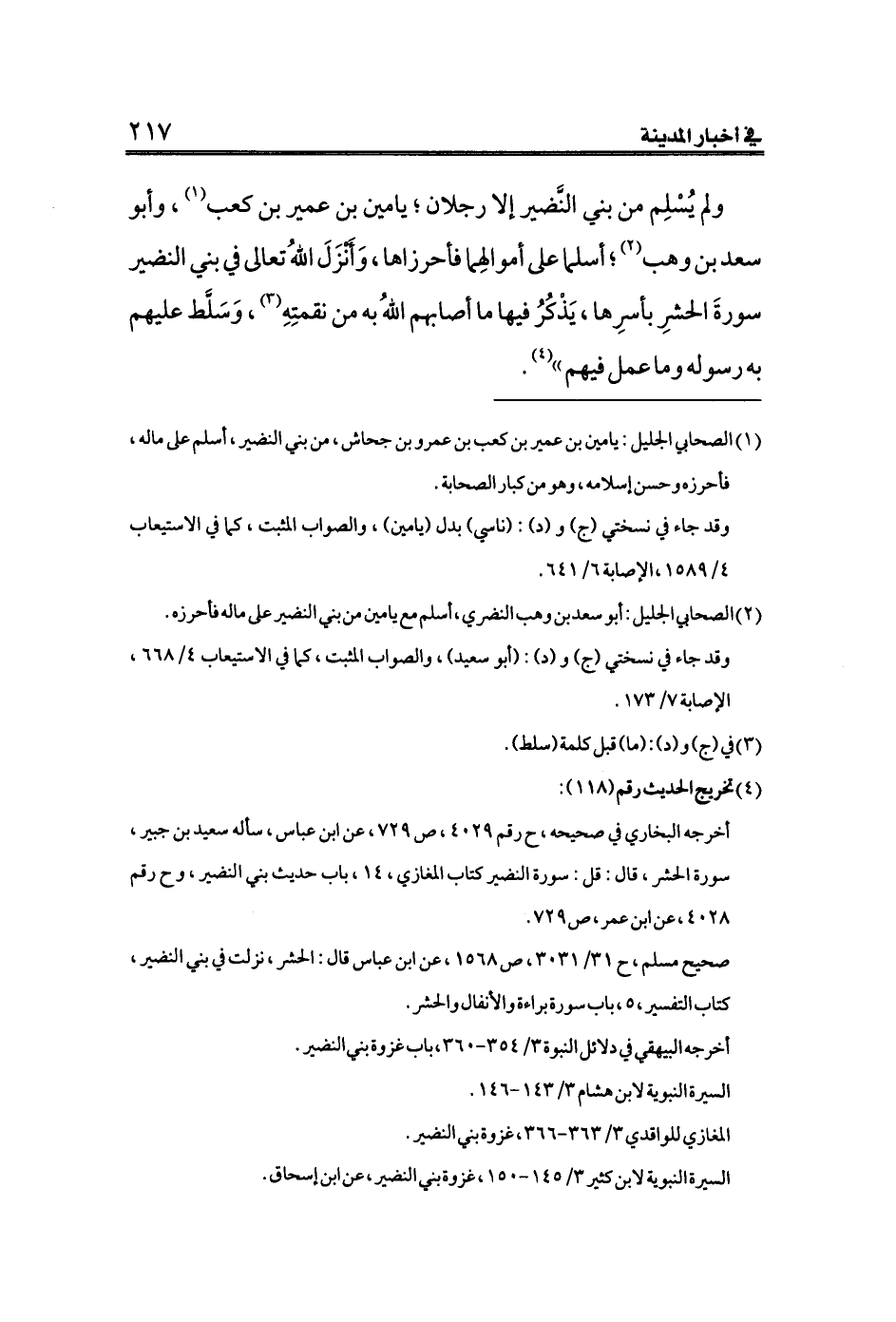 (¬١) الصحابي الجليل: يامين بن عمير بن كعب بن عمرو بن جحاش، من بني النضير، أسلم على ماله، فأحرزه وحسن إسلامه، وهو من كبار الصحابة.