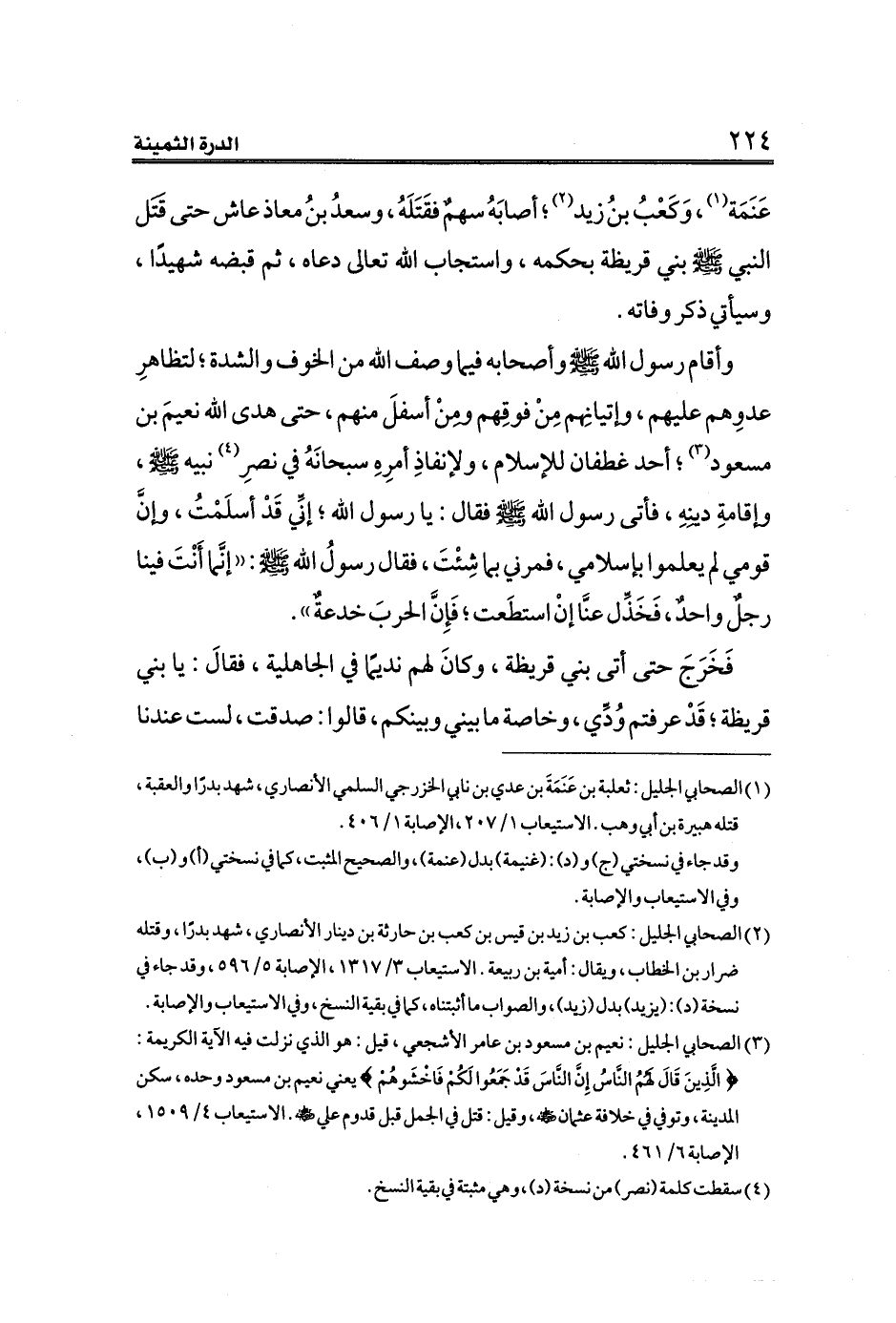 (¬٢) الصحابي الجليل: كعب بن زيد بن قيس بن كعب بن حارثة بن دينار الأنصاري، شهد بدرًا، وقتله ضرار بن الخطاب، ويقال: أمية بن ربيعة. الاستيعاب ٣/ ١٣١٧، الإصابة ٥/ ٥٩٦، وقد جاء في نسخة (د): (يزيد) بدل (زيد)، والصواب ما أثبتناه، كما في بقية النسخ، وفي الاستيعاب والإصابة.