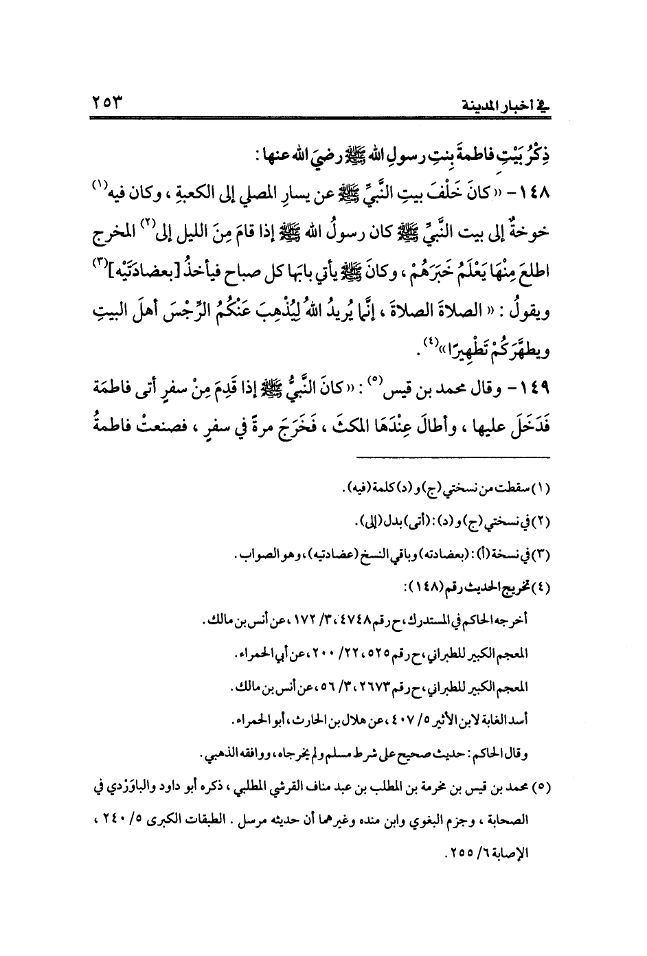 ١٤٩ - وقال محمد بن قيس (¬٥): ((كانَ النَّبيُّ صلى الله عليه وسلم إذا قَدِمَ مِنْ سفرٍ أتى فاطمَة فَدَخَلَ عليها، وأطالَ عِنْدَهَا المكثَ، فَخَرَجَ مرةً في سفرٍ، فصنعتْ فاطمةُ