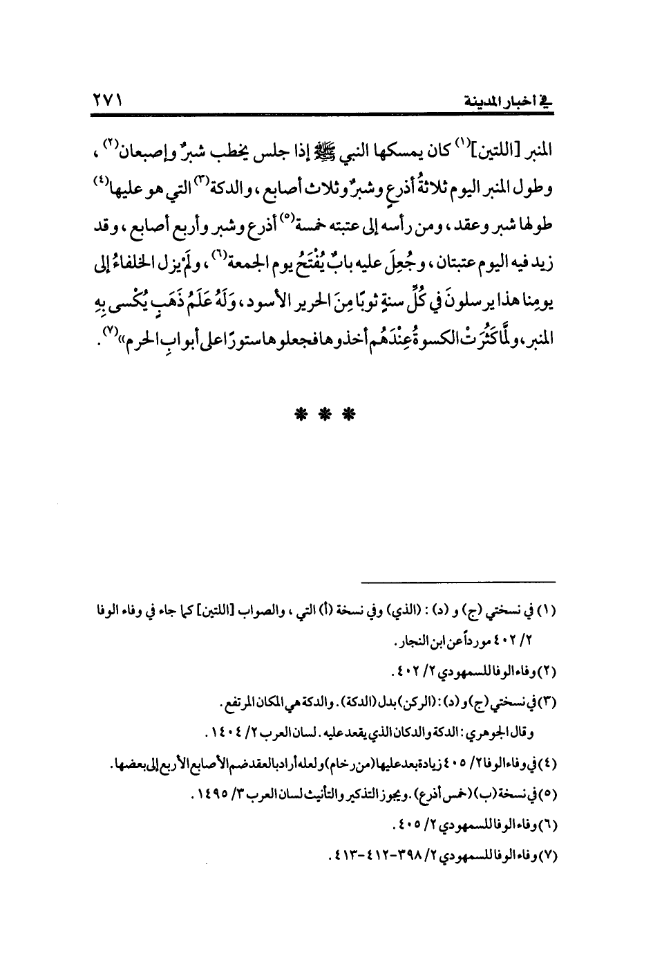 (¬٧) وفاء الوفا للسمهودي ٢/ ٣٩٨ - ٤١٢ - ٤١٣.
