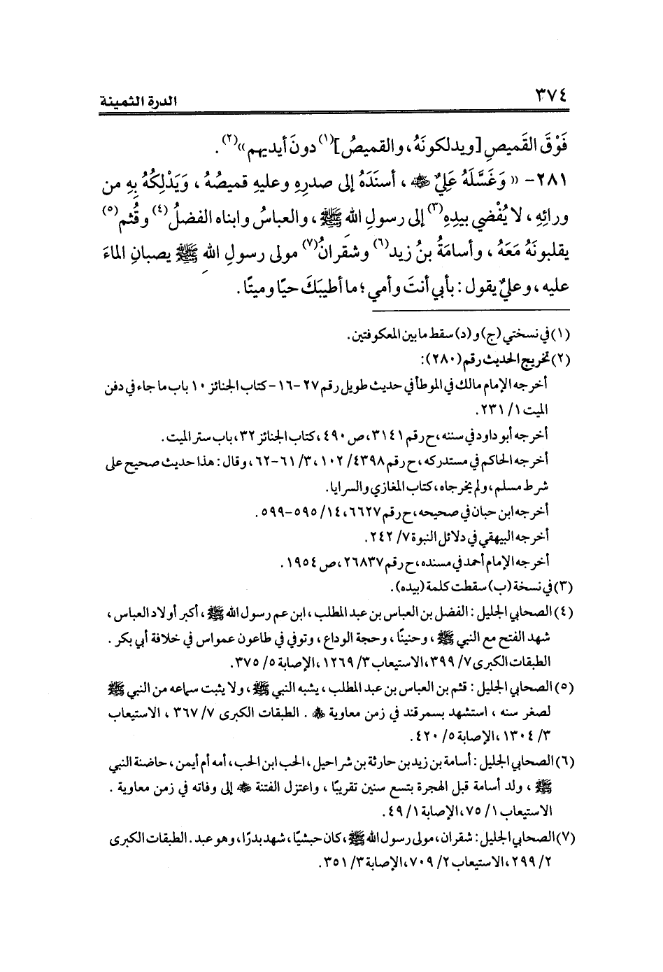 (¬٥) الصحابي الجليل: قثم بن العباس بن عبد المطلب، يشبه النبي صلى الله عليه وسلم، ولا يثبت سماعه من النبي الله صلى الله عليه وسلم لصغر سنه، استشهد بسمرقند في زمن معاوية - رضي الله عنهم -. الطبقات الكبرى ٧/ ٣٦٧، الاستيعاب ٣/ ١٣٠٤، الإصابة ٥/ ٤٢٠.