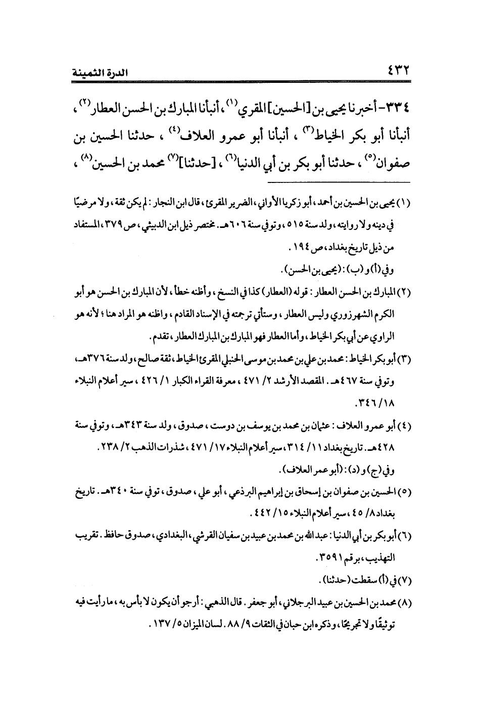 (¬٤) أبو عمرو العلاف: عثمان بن محمد بن يوسف بن دوست، صدوق، ولد سنة ٣٤٣ هـ، وتوفي سنة ٤٢٨ هـ. تاريخ بغداد ١١/ ٣١٤، سير أعلام النبلاء ١٧/ ٤٧١، شذرات الذهب ٢/ ٢٣٨.