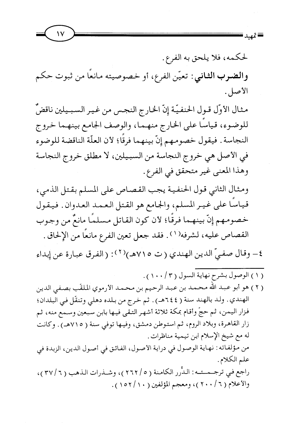 (¬2) هو أبو عبد الله محمد بن عبد الرحيم بن محمد الأرموي الملقب بصفي الدين الهندي. ولد بالهند سنة (644 هـ). ثم خرج من بلده دهلي وتنقّل في البلدان؛ فزار اليمن، ثم حجّ وأقام بمكة ثلاثة أشهر التقى فيها بابن سبعين وسمع منه، ثم زار القاهرة، وبلاد الروم، ثم استوطن دمشق، وفيها توفي سنة (715 هـ). وكانت له مع شيخ الإسلام ابن تيمية مناظرات.