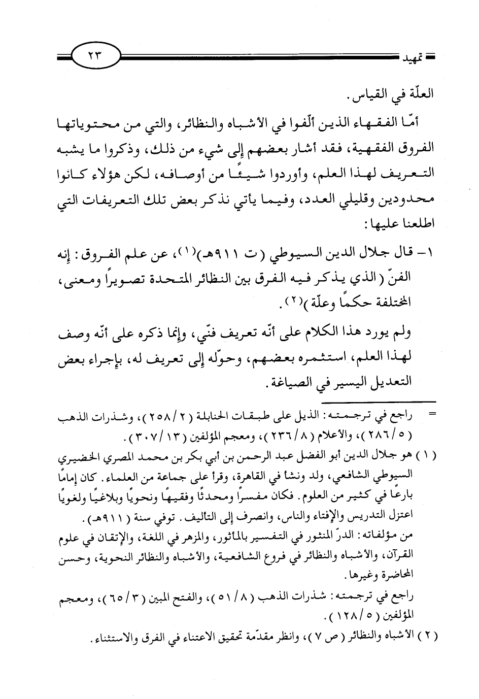 (¬2) الأشباه والنظائر (ص 7)، وانظر مقدمة تحقيق الاعتناء في الفرق والاستثناء.