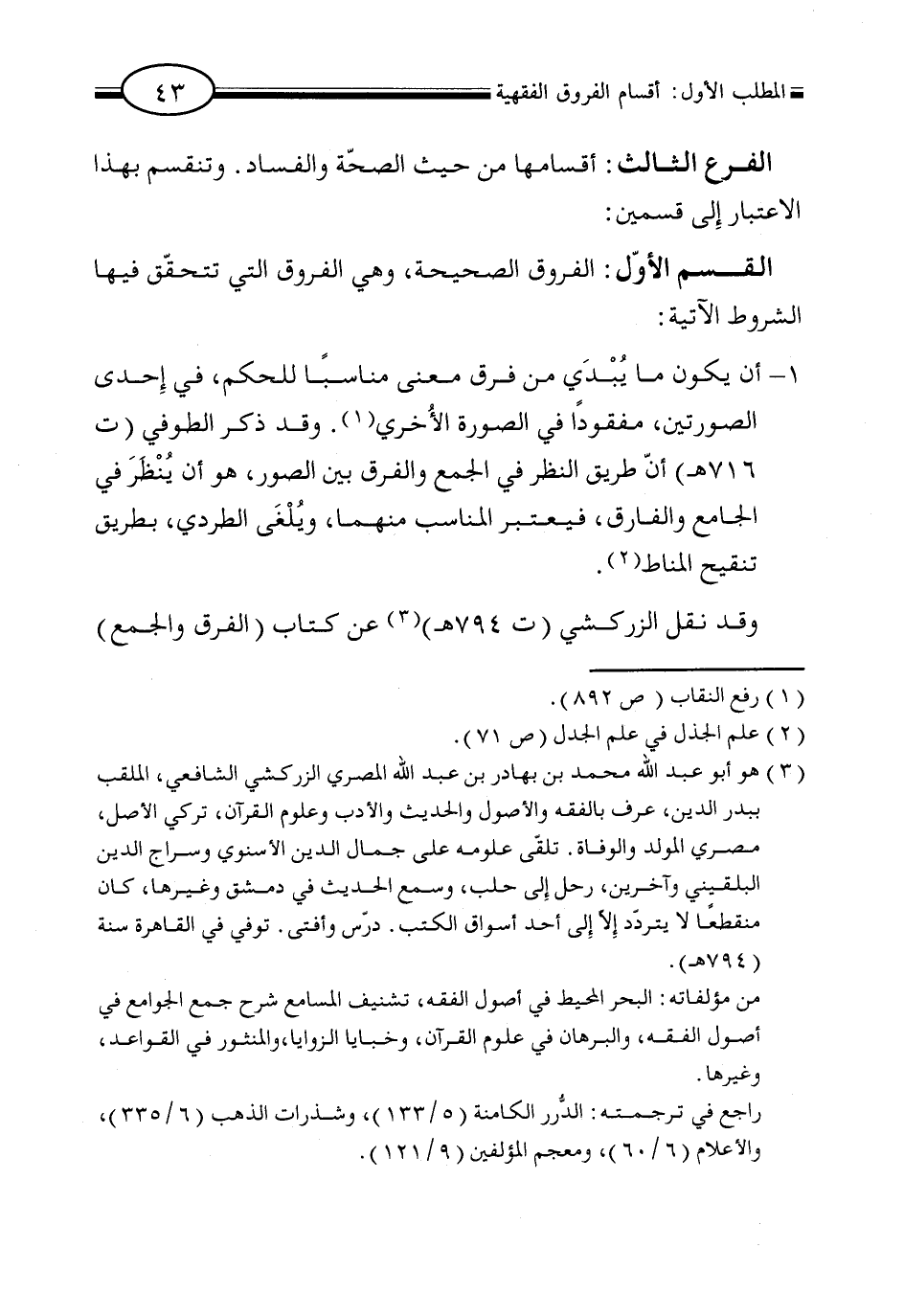 وقد نقل الزركشي (ت 794 هـ) (¬3) عن كتاب (الفرق والجمع)