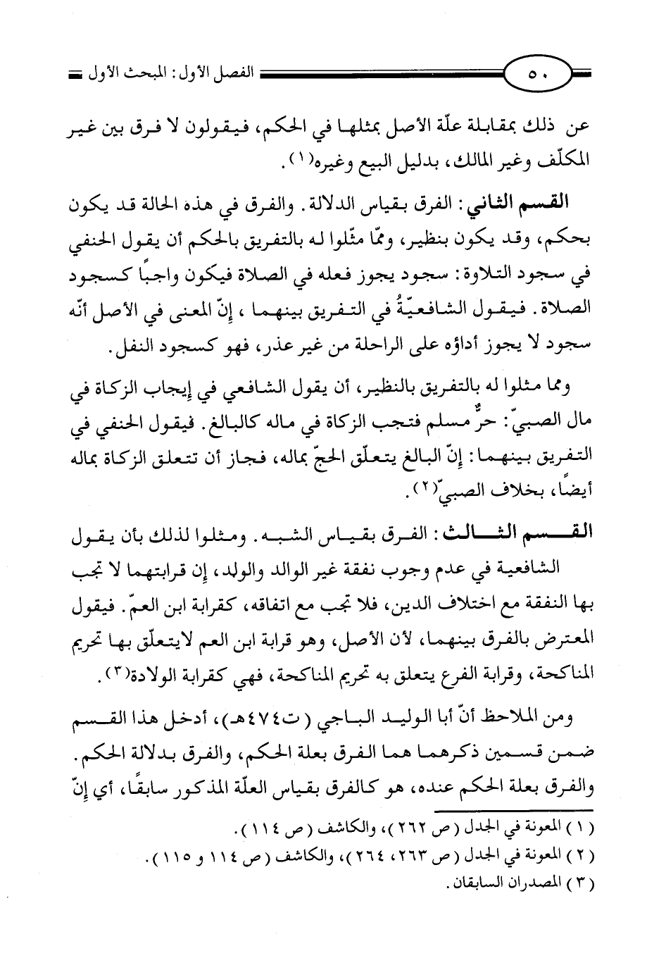 ومن الملاحظ أن أبا الوليد الباجي (ت 474 هـ)، أدخل هذا القسم ضمن قسمين ذكرهما هما الفرق بعلة الحكم، والفرق بدلالة الحكم. والفرق بعلة الحكم عنده، هو كالفرق بقياس العلة المذكور سابقاً، أي إن