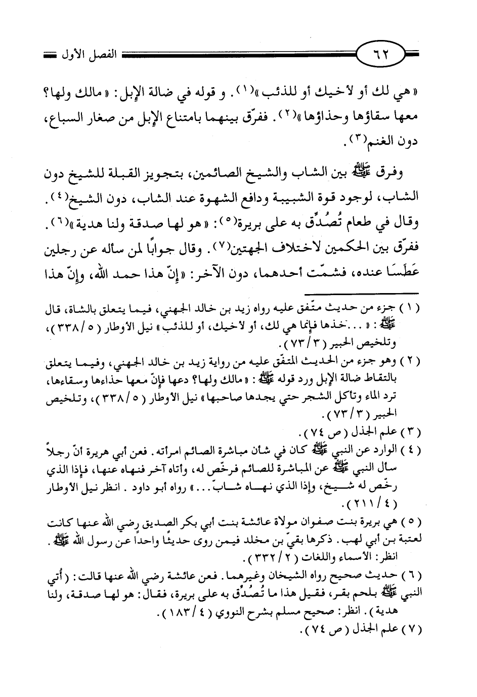 (¬2) وهو جزء من الحديث المتفق عليه من رواية زيد بن خالد الجهني، وفيما يتعلق بالتقاط ضالة الإبل ورد قوله صلى الله عليه وسلم: "مالك ولها؟ دعها فإن معها حذاءها وسقاءها، ترد الماء وتأكل الشجر حتى يجدها صاحبها" نيل الأوطار (5/ 338)، وتلخيص الحبير (3/ 73).
