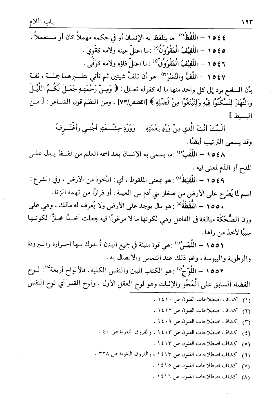 اللف والنشر: هو أن تلف شيئين ثم تأتي بتفسيرهما جملة؛ ثقة بأن السامع يرد إلى كل واحد منهما ما له، كقوله تعالى: {وَمِنْ رَحْمَتِهِ جَعَلَ لَكُمُ اللَّيْلَ وَالنَّهَارَ لِتَسْكُنُوا فِيهِ وَلِتَبْتَغُوا مِنْ فَضْلِهِ} ، ومن النظم قول الشاعر: