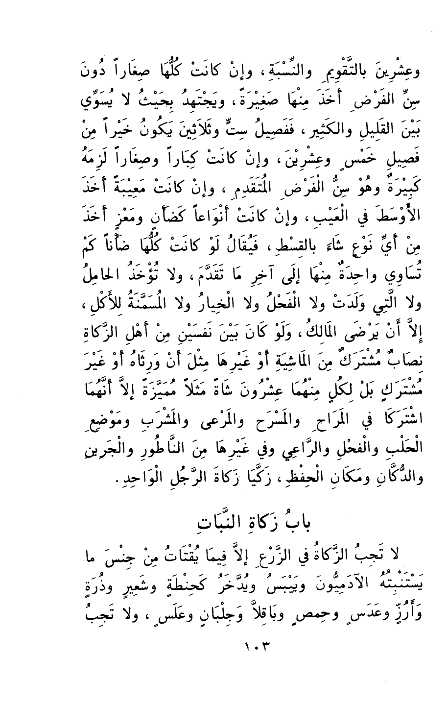 وإنْ كانتْ كلها صغاراً دونَ سنِّ الفرضِ أخذَ منها صغيرةً، ويجتهدُ بحيثُ لا يُسوِّي بينَ القليلِ والكثيرِ، ففصيلُ ستٍّ وثلاثينَ يكونُ خيراً منْ فصيلِ خمسٍ وعشرينَ، وإنْ كانتْ كباراً وصغاراً لزمهُ كبيرةٌ، وهوَ سنُّ الفرضِ المتقدمِ.