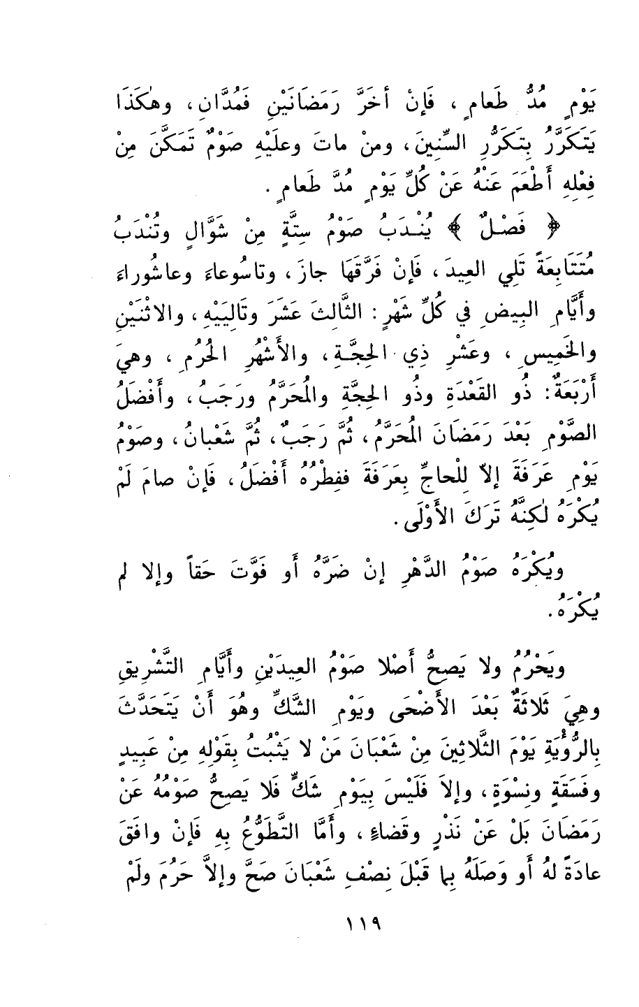 وأفضلُ الصومِ بعدَ رمضانَ المحرَّم ثمَّ رجبٌ ثمَّ شعبانَ، وصومُ يومِ عرفةَ إلا للحاجِّ بعرفةَ ففطرُهُ أفضلُ، فإنْ صامَ لمْ يكرهْ لكنَّهُ تركَ الأولى، ويكرهُ صومُ الدهرِ إنْ ضرَّهُ أوْ فوَّتَ حقاً، وإلا لمْ يكرهْ.