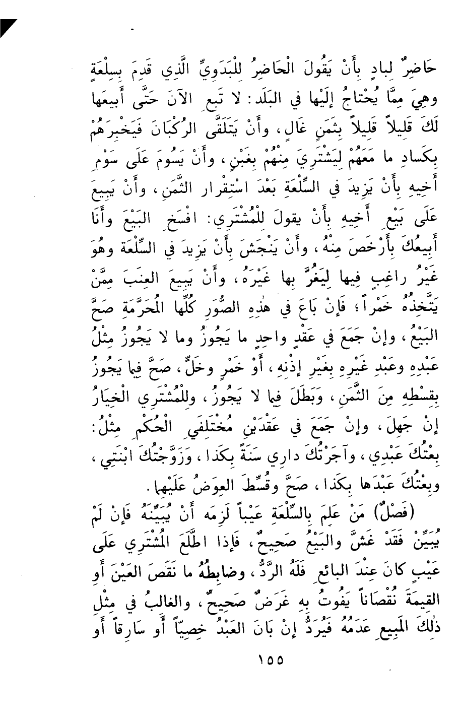 حاضرٌ لبادٍ، بأنْ يقولَ الحاضرُ للبدويِّ الذي قدمَ بسلعةٍ، وهيَ مما يُحتاجُ إليها في البلدِ: لا تبعِ الآنَ حتى أبيعَها لكَ قليلاً قليلاً بثمنٍ غالٍ.