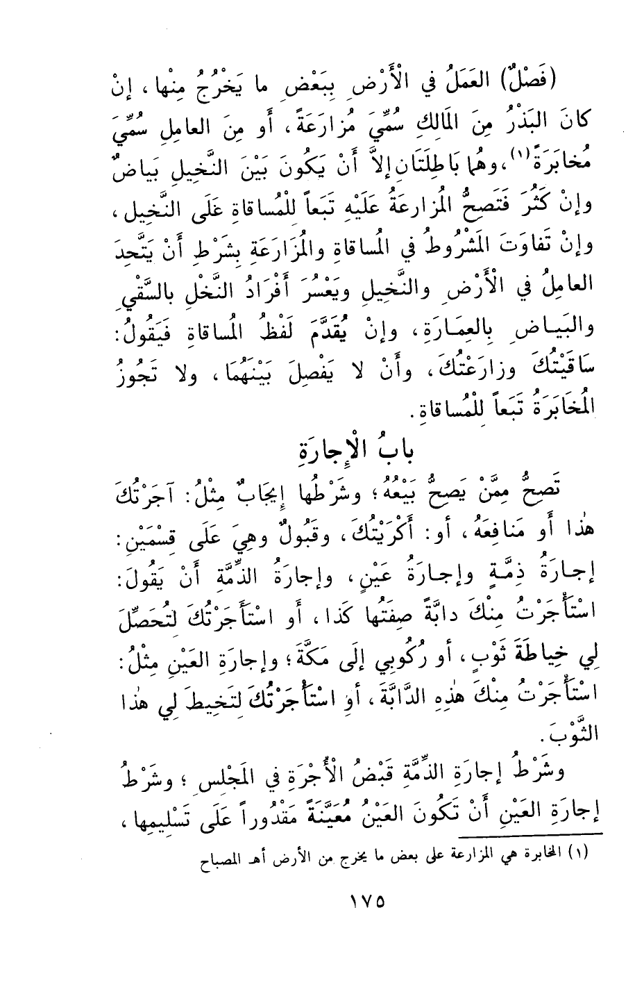 العملُ في الأرضِ ببعضِ ما يخرُجُ منها إن كانَ البذْرُ من المالكِ سُميَ مُزارعةً، أو منَ العاملِ سُميَ مخابَرَةً، وهما باطلتانِ، إلا أن يكونَ بينَ النخيلِ بياضٌ وإن كَثُرَ، فتصحُّ المزارعةُ عليهِ تبَعاً للمساقاةِ على النخيلِ، وإن تفاوتَ المشروطُ في المساقاة والمزارعةِ، بشرط: