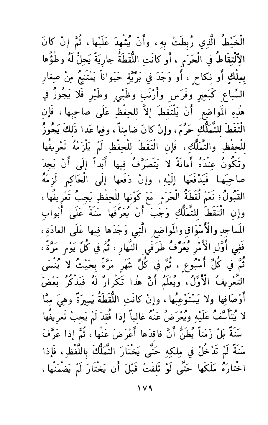 ثمَّ إنْ كانَ الالتقاطُ في الحَرَمِ أوْ كانت اللقطةُ جاريةً يحلُّ لهُ وَطؤها بمِلكِ أوْ نِكاحٍ، أو وجدَ في بريةٍ حيواناً يمتنِعُ منْ صغارِ السباعِ كبعيرٍ وفرسٍ وأرنبٍ وظبيٍ وطيرٍ فلا يجوزُ في هذهِ المواضعِ أنْ يلتقطَ إلا للحفظِ على صاحبها، فإنْ التقطَ للتمَلُّكِ حَرُمَ وكانَ ضامناً، وفيما عدا ذلكَ يجوزُ للحفظِ والتَّملُّكِ.