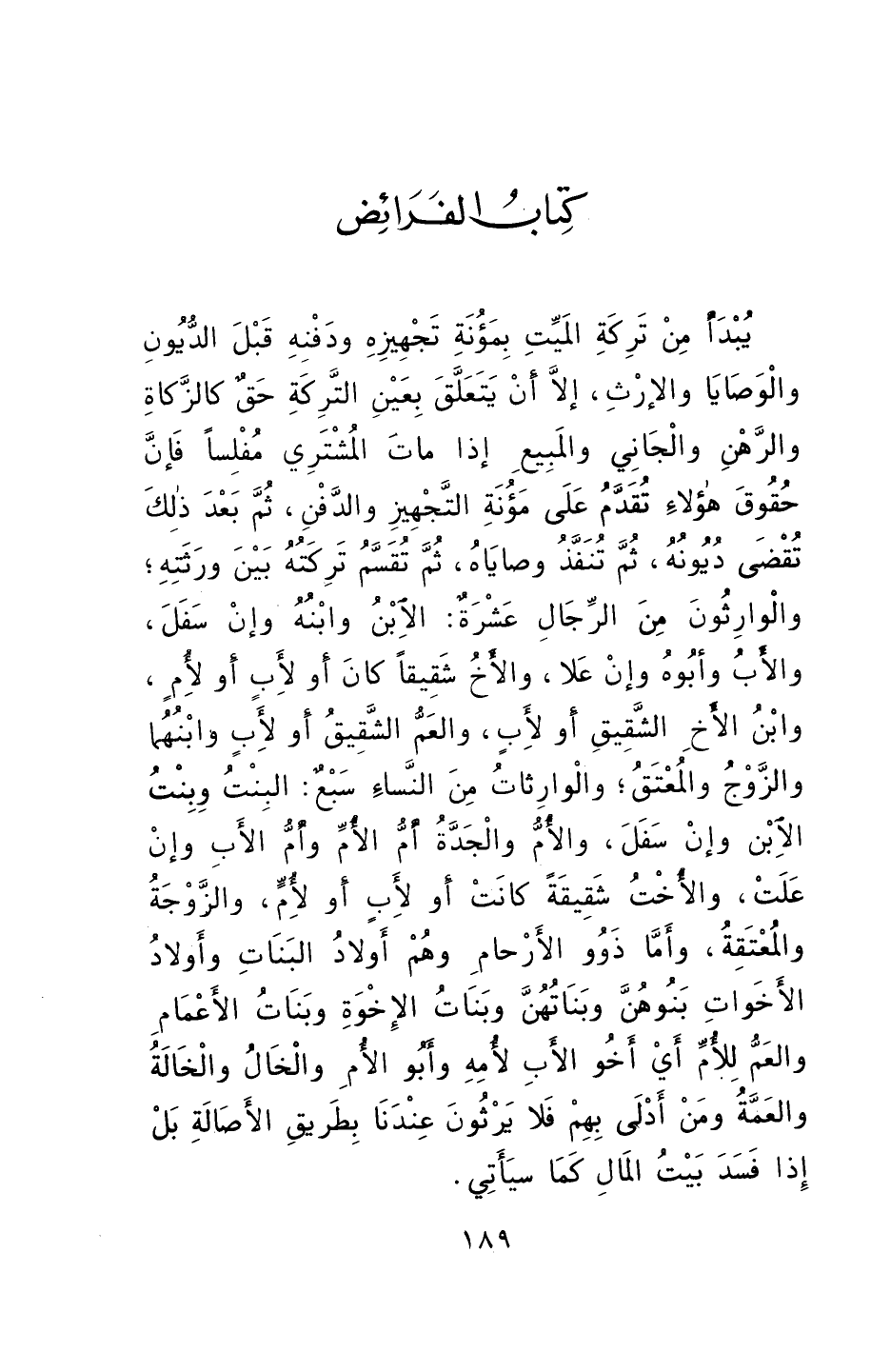 وأمَّا ذَوو الأرحامِ، وهُمْ: أولادُ البناتِ، وأولادُ الأخواتِ، وبَنوهنَّ وبناتُهُنَّ، وبناتُ الإِخوةِ، وبناتُ الأعمامِ، والعَمُّ لِلأُمِّ؛ أيْ: أَخو الأبِ لأمِّهِ، وأبو الأُمِّ، والخالُ والخالةُ، والعمَّةُ، ومنْ أدْلى بهمْ، فلا يَرِثونَ عِنْدنا بطريقِ الأصالةِ بل إذا فسَدَ بَيْتُ المالِ كما سيأتي.
