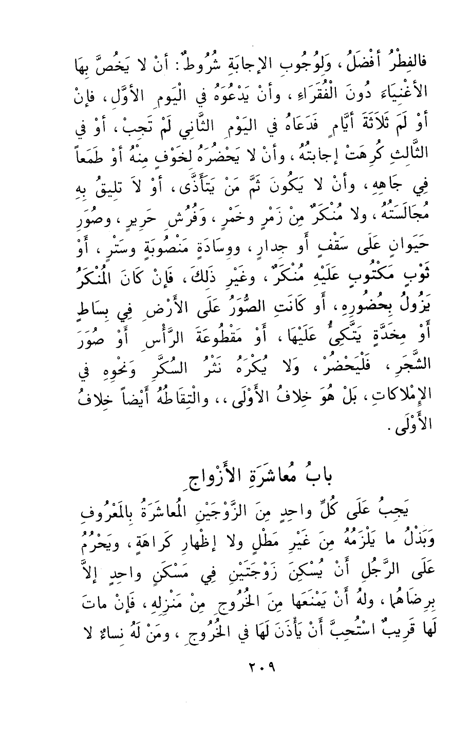 2 - وأنْ يدْعوهُ في اليومِ الأولِ، فإنْ أولَمَ ثلاثةَ أيامٍ فدعاهُ في اليومِ الثاني لمْ يجبْ، أوْ في الثالثِ كُرهتْ إجابتُهُ.