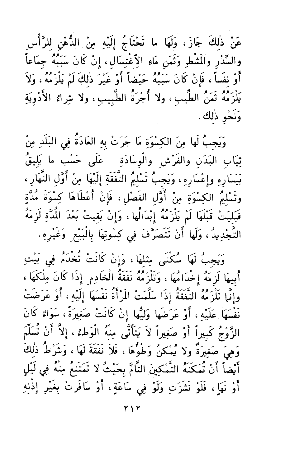 ولها ما تحْتاجُ إليهِ مِنَ الدُّهنِ للرَّأسِ، والسِّدْرِ، والمِشْطِ، وثَمنِ ماءِ الاغتسالِ إنْ كانَ سببُهُ جِماعاً أو نفاساً، فإنْ كانَ سببُهُ حيْضاً أو غيرَ ذلكَ لمْ يلْزمْهُ.