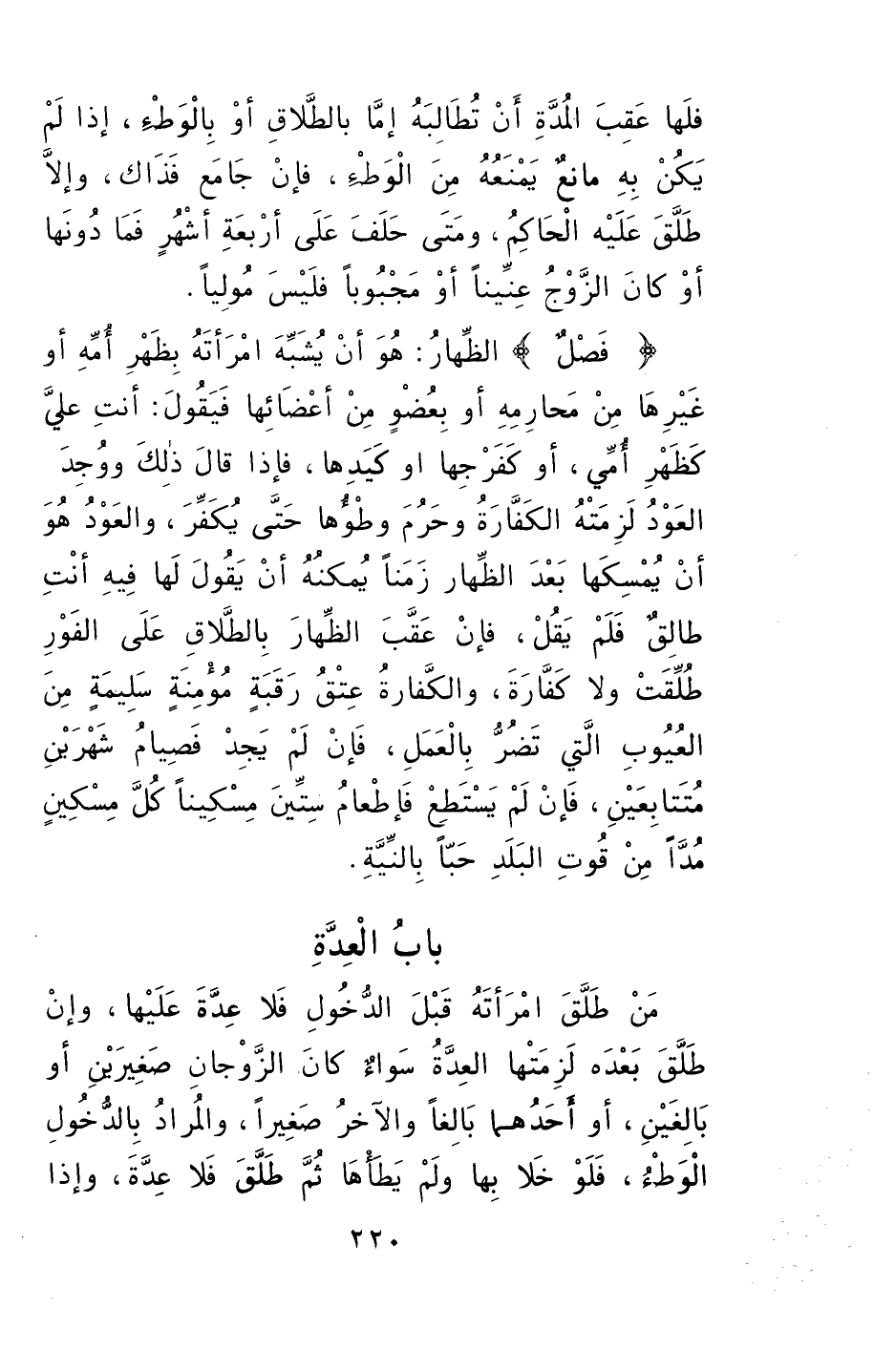 الظِّهارُ هو أنْ يُشبِّهَ امرأتَهُ بظَهْرِ أُمِّهِ أو غيرِها منْ محارمِهِ، أو بِعُضْوٍ منْ أعضائِها، فيقول: أنتِ عليَّ كَظَهْرِ أُمِّي، أو كَفَرْجِها أو كَيَدِها، فإذا قالَ ذلكَ ووُجدَ العوْدُ لزِمتْهُ الكفَّارةُ، وحَرُمَ وطْؤُها حتَّى يُكفِّرَ، والعَوْدُ هو: أنْ يُمْسِكَها بعدَ الظِّهارِ زمناً يُمكنُهُ أنْ يقولَ لها فيهِ أنتِ طالقٌ فلمْ يقُلْ، فإنْ عَقَّبَ الظِّهارَ بالطَّلاقِ على الفوْرِ طُلِّقَتْ ولا كفَّارةَ.