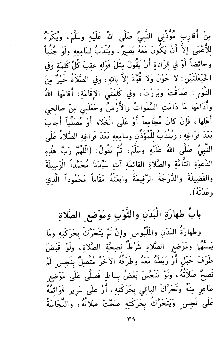 ويندب للمؤذن وسامعه بعد فراغه الصلاة على النبي صلى الله عليه وسلم، ثم يقول: "اللهم رب هذه الدعوة التامة، والصلاة القائمة، آت سيدنا محمداً الوسيلة والفضيلة، والدرجة الرفيعة، وابعثه مقاماً محموداً الذي وعدته".
