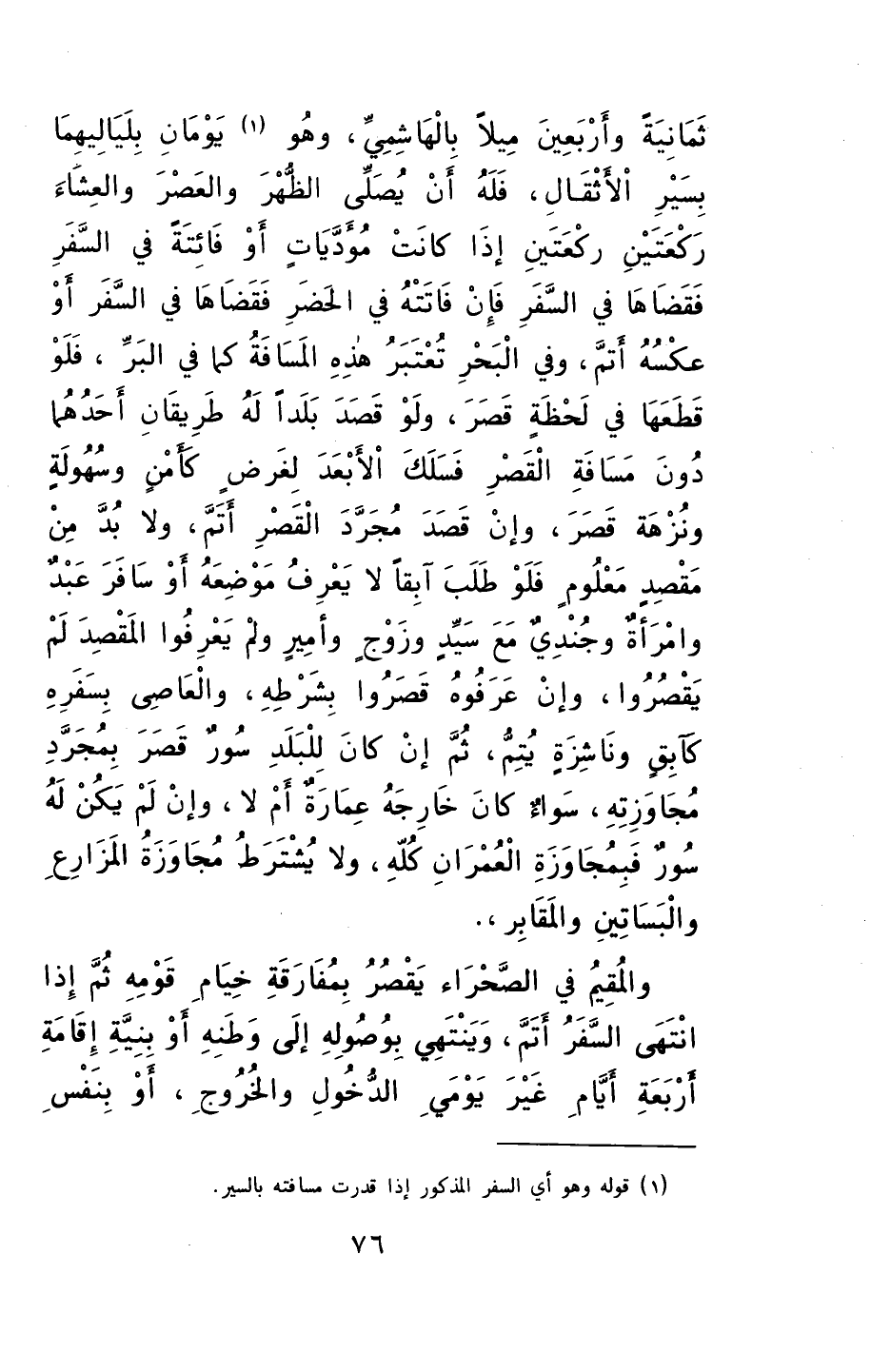 والمقيمُ في الصحراءِ يقصُرُ بمفارقةِ خيامِ قومهِ.