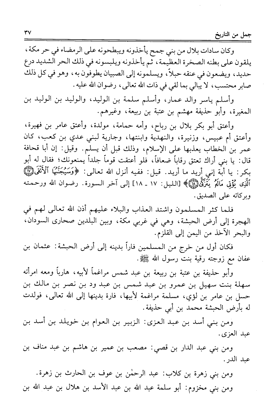 ثم على بن أبى طالب، واسم أبيه عبد مناف بن عبد المطلب بن هاشم ابن عبد مناف بن قصى بن كلاب بن مرة بن كعب بن لؤى بن غالب بن فهر. وزيد بن حارثة، وبلال.