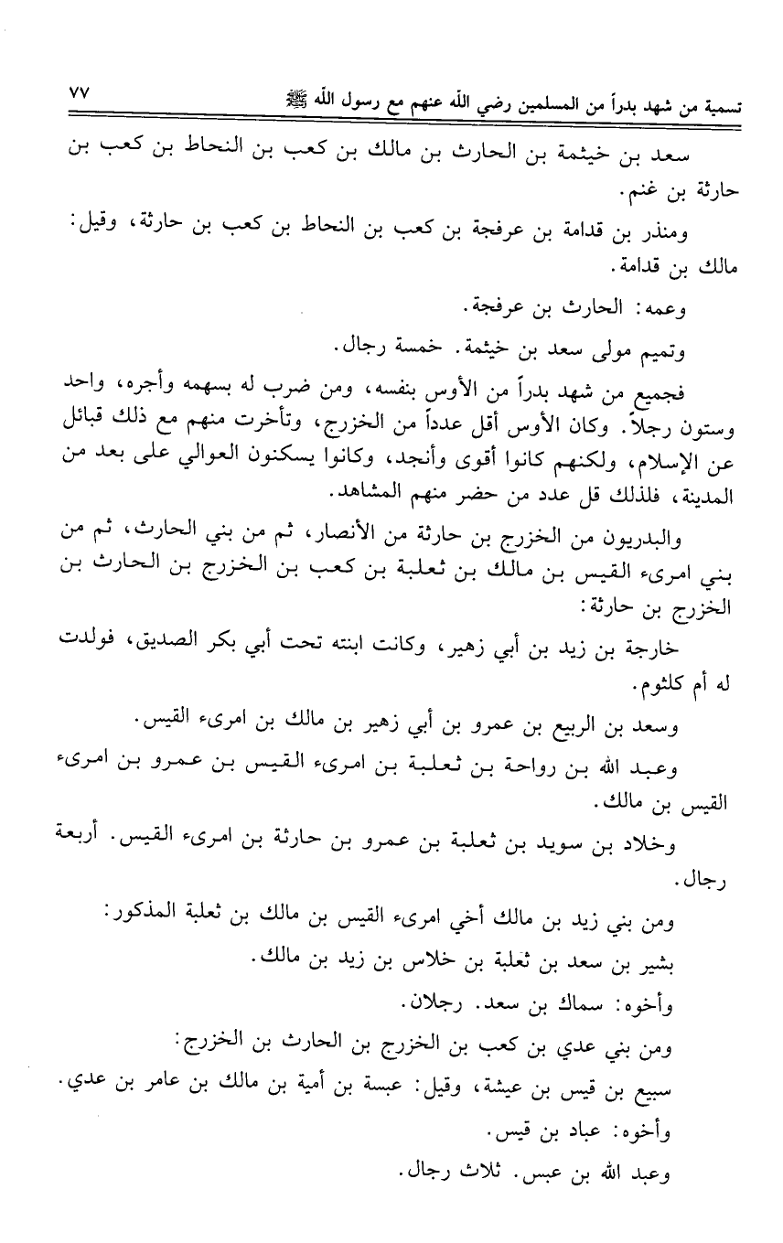 الأنصار أحد، فنهض حتى بلغ أحياء، وهو ماء بالحجاز بأسفل ثنية المرة، فلقى بها جمعا عظيما من قريش، قيل: إنه كان عليهم عكرمة بن أبى جهل، وقيل: بل كان عليهم مكرز بن حفص بن الأخيف. فلم يكن بينهم قتال، إلا أن سعد بن أبى وقاص، وكان فى ذلك البعث، رمى بسهم؛ فهو أول سهم رمى به فى سبيل الله تعالى. وفر من الكفار يومئذ إلى المسلمين: المقداد ابن عمرو، وعتبة بن غزوان، وهو الذى بنى البصرة بعد ذلك، وكان قديمى الإسلام، إلا أنهما لم يجدا السبيل إلى اللحاق بالنبى صلى الله عليه وسلم.