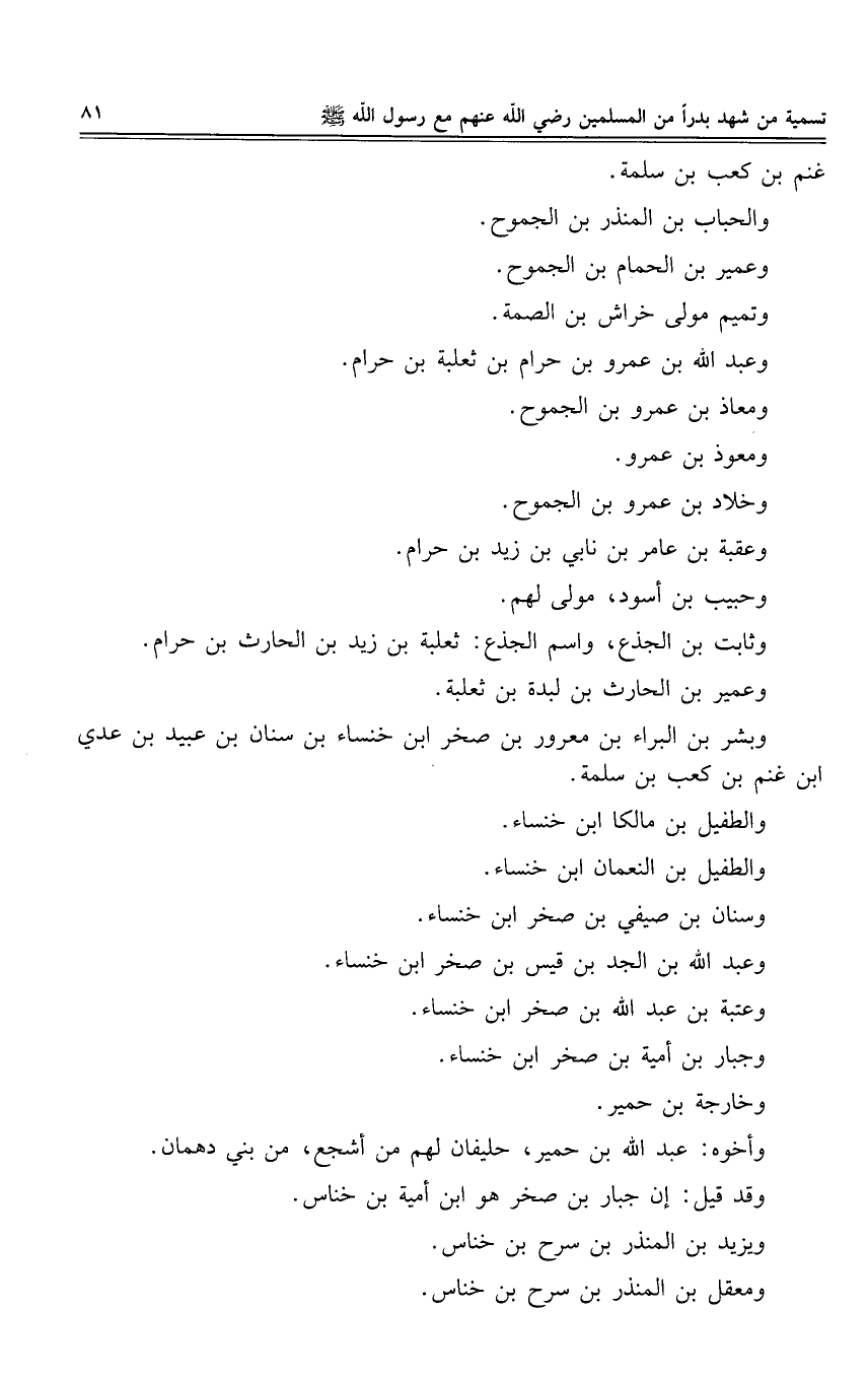 فأقام رسول الله صلى الله عليه وسلم- كما ذكرنا- إلى رمضان من السنة الثانية، ثم اتصل به عليه صلوات الله تعالى وسلامه أن عيرا لقريش عظيمة فيها أموال كثيرة مقبلة من الشام إلى مكة، فيها ثلاثون رجلا من قريش، عميدهم أبو سفيان بن حرب، أو قيل: أربعون رجلا؛ من جملتهم: مخرمة بن نوفل بن أهيب بن عبد مناف بن زهرة، وعمرو بن العاص؛ فندب رسول الله صلى الله عليه وسلم إلى هذه العير، وأمر من كان ظهره حاضرا بالخروج، ولم يحتفل فى الحشد، لأنه إنما قصد العير، ولم يقدر أنه يلقى حربا ولا قتالا، فاتصل بأبى سفيان أن رسول الله صلى الله عليه وسلم خارج إليهم، فاستأجر ضمضم بن عمرو الغفارى، فبعثه إلى أهل مكة مستنفرا لهم إلى نصر عيرهم، فنهض إلى مكة، واستنفر، فنفر أهل مكة، وأوعبوا «2» إلا اليسير، وكان ممن تخلف أبو لهب، ونفر سائر أشرافهم.