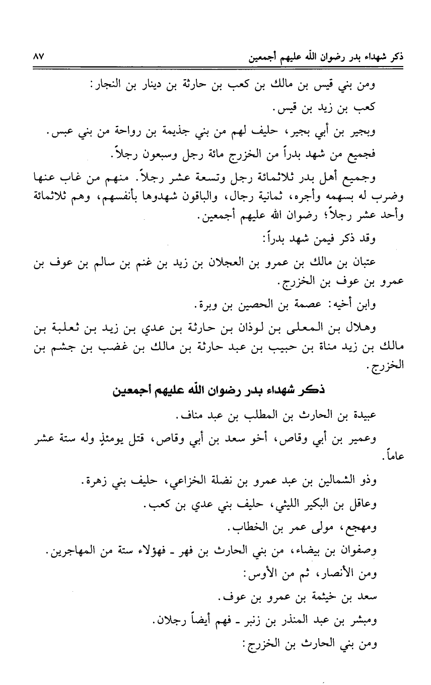 تسمية من شهد بدرا من المسلمين رضى الله عنهم مع رسول الله صلى الله عليه وسلم