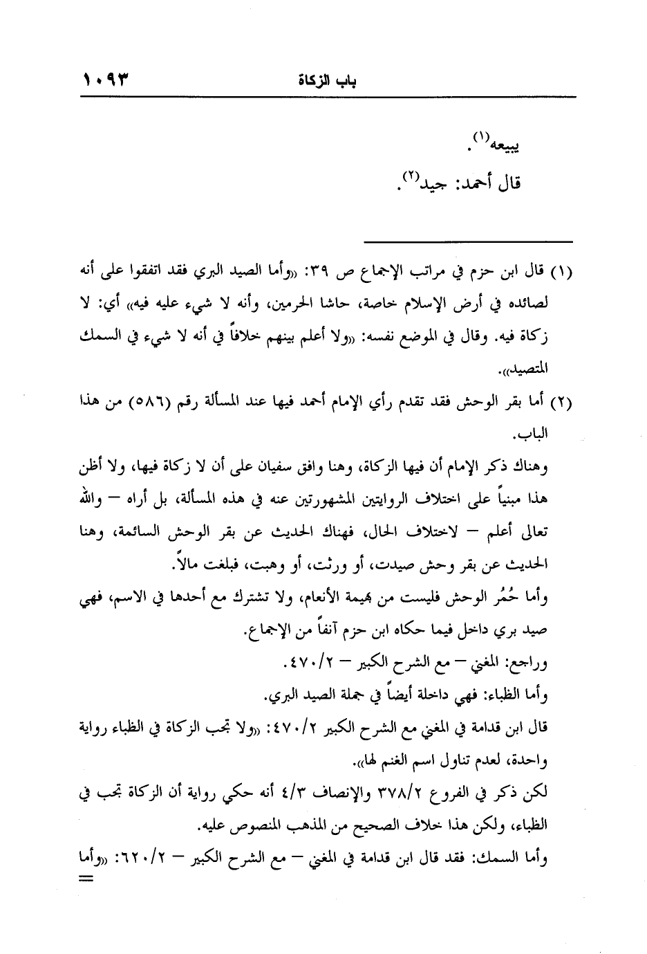 2أما بقر الوحش فقد تقدم رأي الإمام أحمد فيها عند المسألة رقم (586) من هذا الباب.