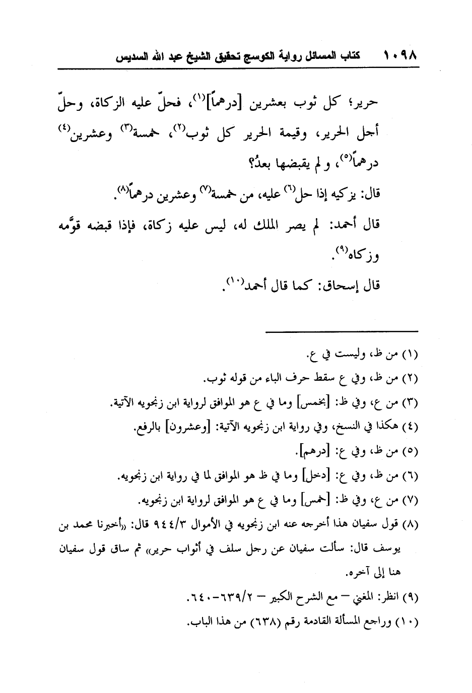 9انظر: المغني - مع الشرح الكبير - 2/639-640.