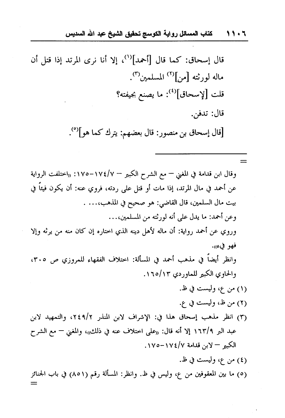 قال إسحاق: كما قال [أحمد] 1، إلا أنا نرى المرتد إذا قتل أن ماله لورثته [من] 2 المسلمين3.